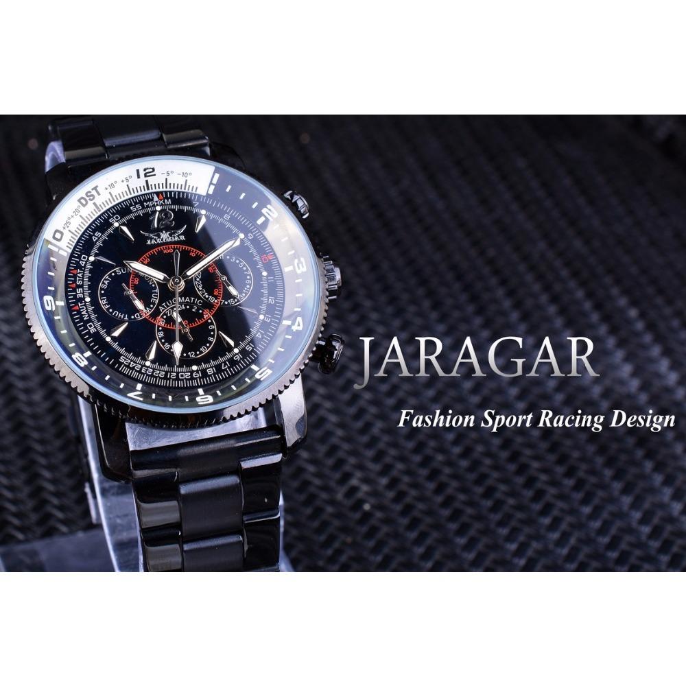 JARAGAR Механические часы, мужские модные повседневные автоматические механические часы со стальным ремнем с шестью контактами GMT1104-1-A