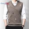 Мужской свитер Argyle, жилеты с v-образным вырезом, пуловер без рукавов, классический деловой трикотаж, шерстяной кардиган, осенне-зимний жилет