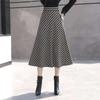 Шерстяные юбки миди с рисунком «гусиная лапка», женские корейские офисные длинные юбки А-силуэта с поясом, элегантные длинные клетчатые юбки для женщин, Faldas