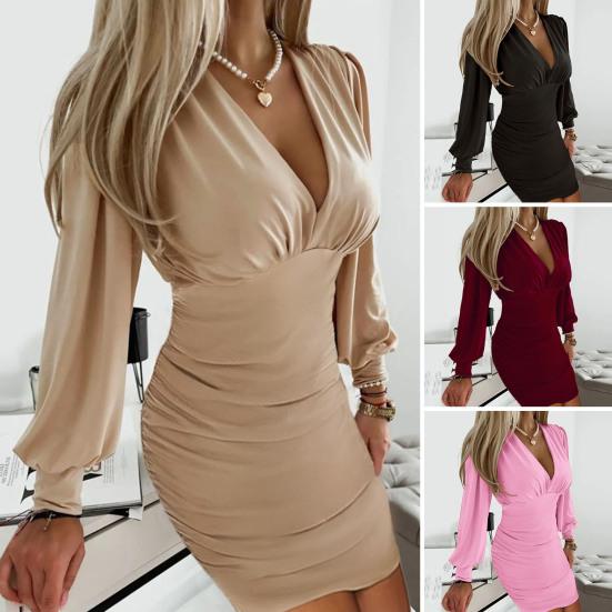 Представляем наше элегантное и универсальное однотонное платье, идеально подходящее для женщин любого роста.. Это платье, изготовленное из высококачественной полиэфирной ткани, мягкое, легкое и подходит для осенней, весенней и зимней одежды.. V-образный вырез и длинные рукава добавляют изысканности, а талия и облегающий крой подчеркивают ваши изгибы.. Плиссированная отделка придает элегантность этому простому и повседневному платью.. Собираетесь ли вы на торжественное мероприятие или занимаетесь повседневными делами, это платье можно сочетать с обувью на каблуках и сверкающими украшениями, чтобы создать гламурный образ, или надеть с балетками, чтобы создать идеальный повседневный наряд.. Подходит для различных случаев, таких как повседневные прогулки, отпуск, вечеринки, работа или даже просто отдых дома.. Ощутите стиль и комфорт в нашем однотонном платье.