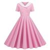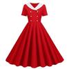 Женское платье для выпускного вечера Vinatge 50-х годов Вечернее платье трапециевидной формы с короткими рукавами и V-образным вырезом, декор на пуговицах, поддельное двубортное, со скрытой молнией, однотонное