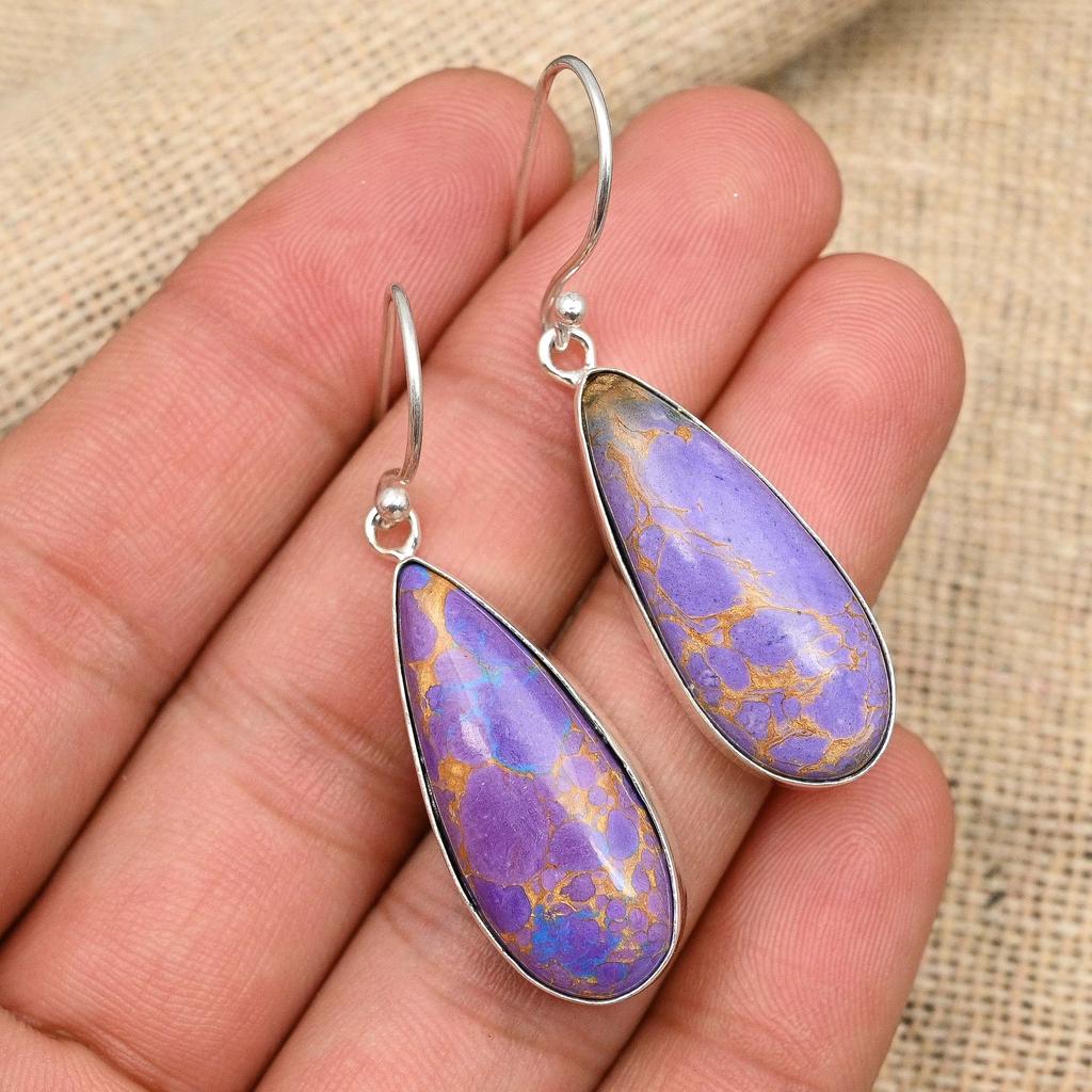 Ювелирные изделия ручной работы с фиолетовым медным бирюзовым драгоценным камнем, серьги из стерлингового серебра 925 пробы