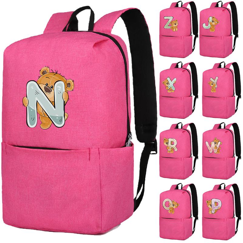 Рюкзак «Милый маленький медвежонок» с 26 английскими буквами, школьная сумка для девочек, холщовые рюкзаки для косплея, детская сумка для книг, обратно в школу