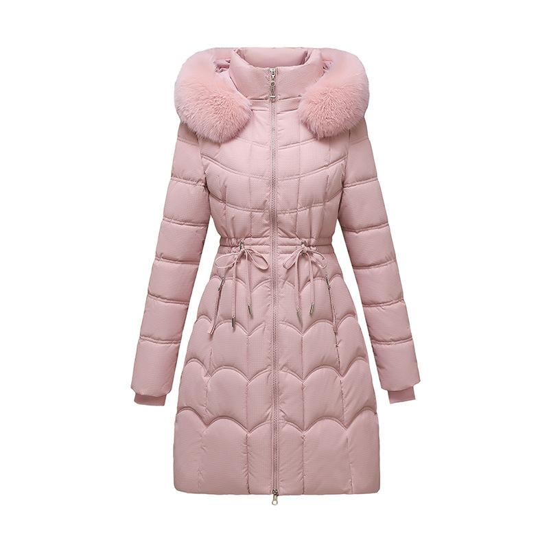 Длинный пуховик 2023 Зимняя тонкая съемная куртка с большим меховым воротником