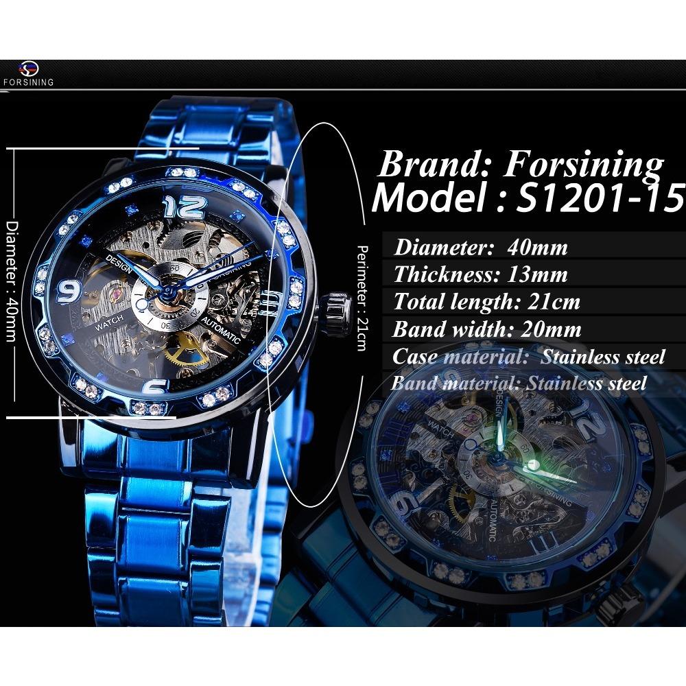 Forsining Часы мужские модные повседневные классические популярные механические часы с полыми стразами и ручным управлением S1201-15-A
