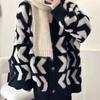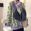 Осенне-зимний женский свитер, кардиган, контрастный цвет, длинный рукав, пуговицы в полоску, свободная одежда, вязаный свитер, куртка
