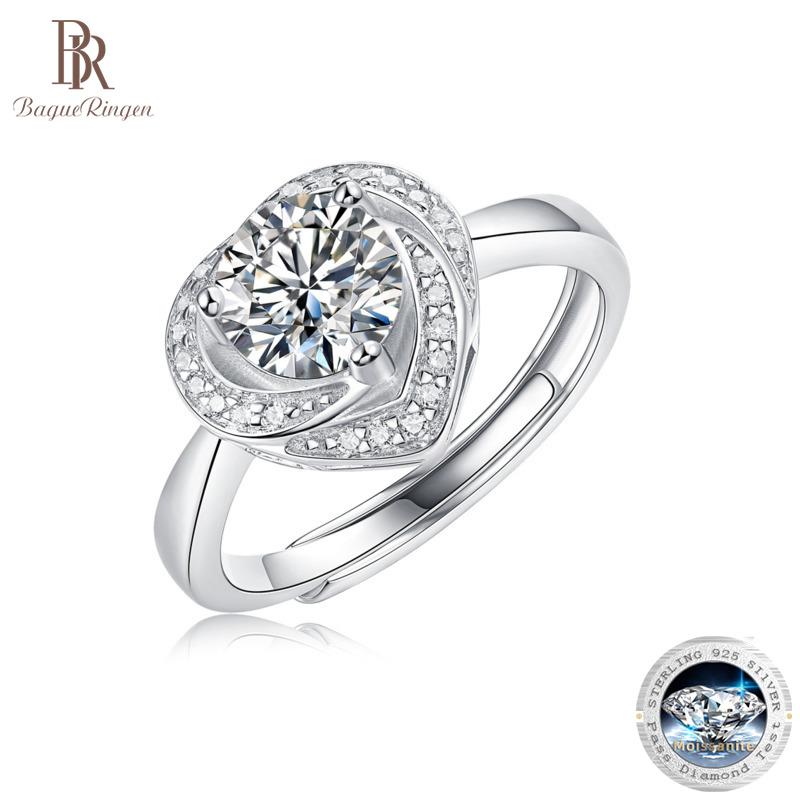 Bague Ringen S925 Набор с муассанитом в форме сердца 1 карат, серия Creative Trend, регулируемые кольца, аксессуары