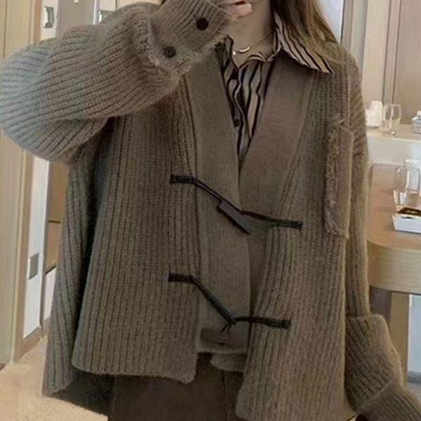 Осенне-зимний женский свитер «Ленивый ветер» с деревянными пуговицами Тяжелый вязаный кардиган ручной работы большого размера Женский свободный свитер с кисточками Женская куртка Tide