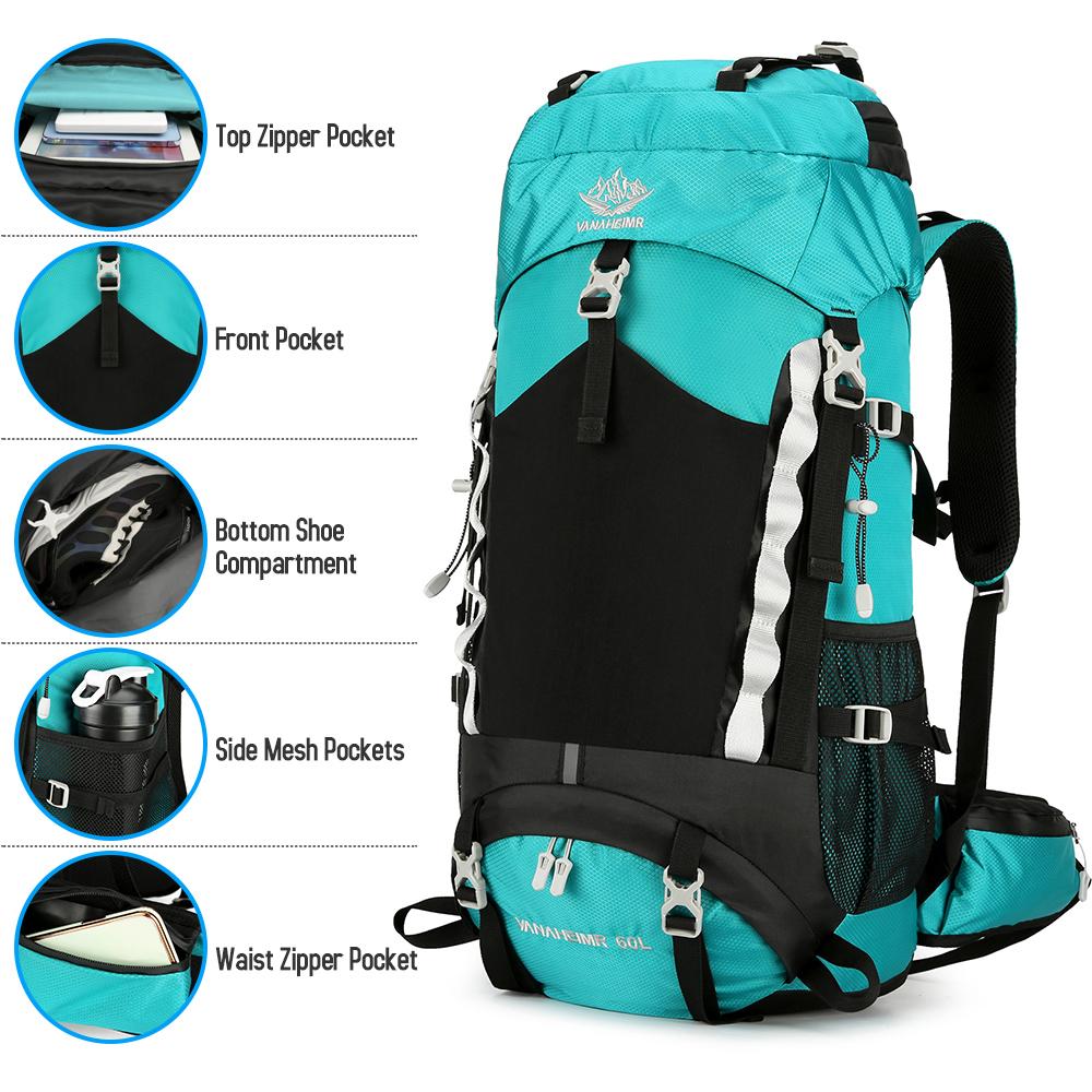 60л водонепроницаемый походный рюкзак, походный рюкзак с дождевиком для кемпинга, пешего туризма, путешествий