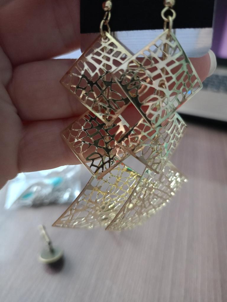 Очень мелкие украшения. Могут подойти девочке лет 10. Обязательно нужно указывать размер в см : высота ( длина), ширина. Отсутствует замок на серьгах, следовательно, риск потерять очень вероятен...