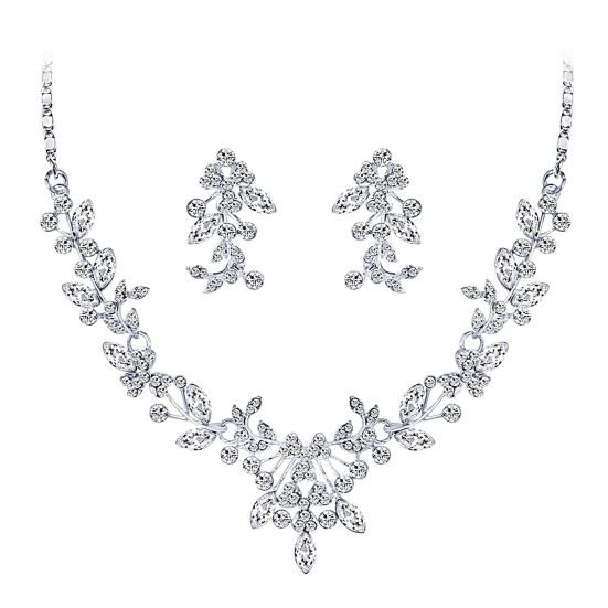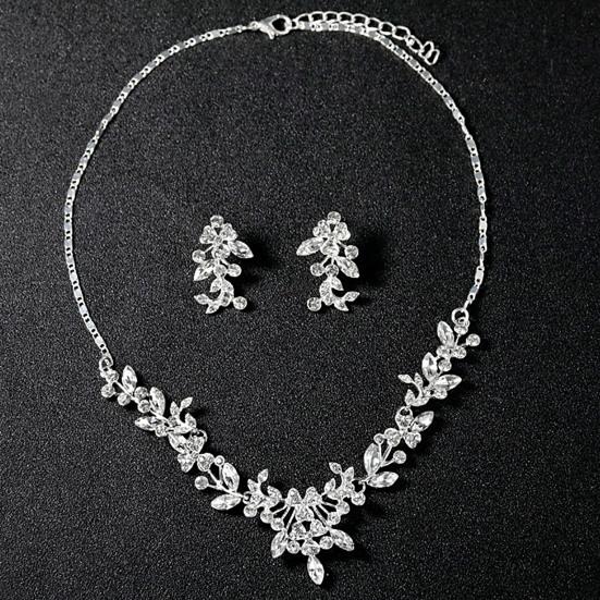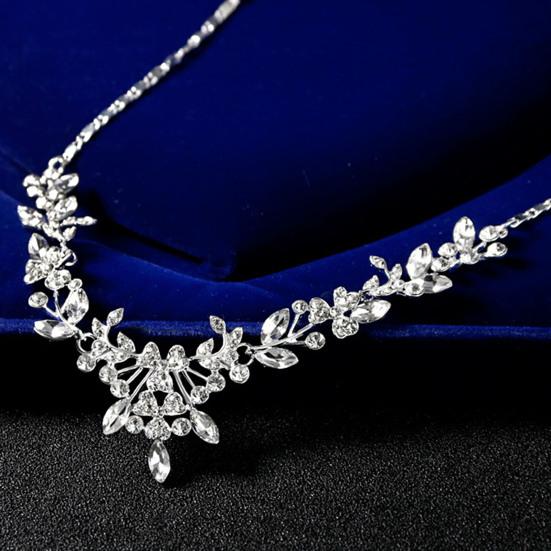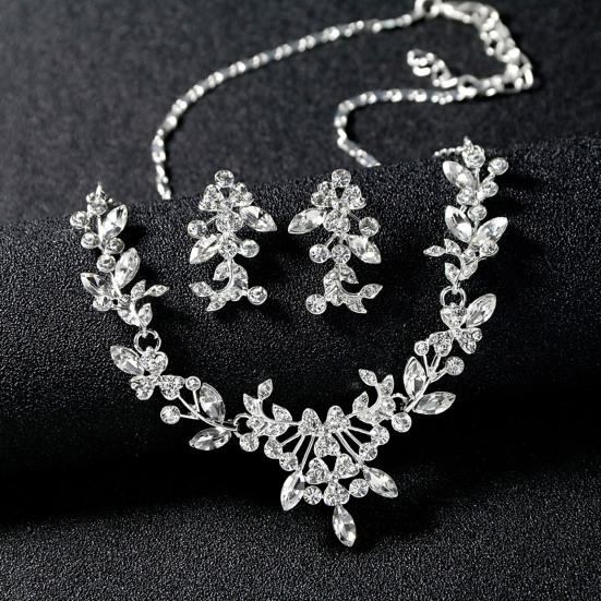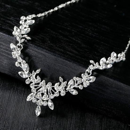 Женщины свадьба горный хрусталь блестящие цветочные ожерелье серьги комплект ювелирных изделий подарок