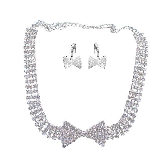Блестящие стразы с бантом, клипсы/серьги-гвоздики, ожерелье, комплект свадебных украшений