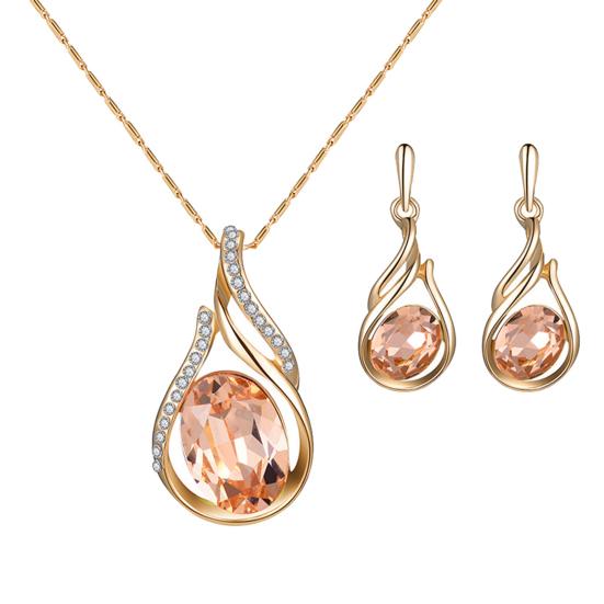 Женщины горный хрусталь овальный искусственный кварц кулон серьги-гвоздики ожерелье комплект ювелирных изделий