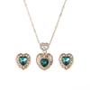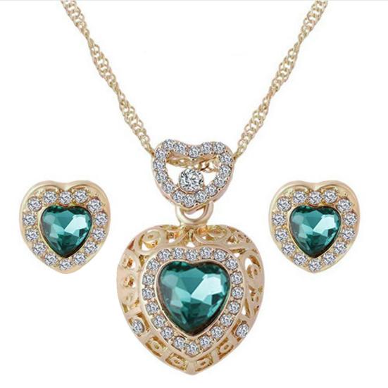 Мода Сердце Сплава Горный Хрусталь Ожерелье Уха Шпильки Серьги Женщины Комплект Ювелирных Изделий
