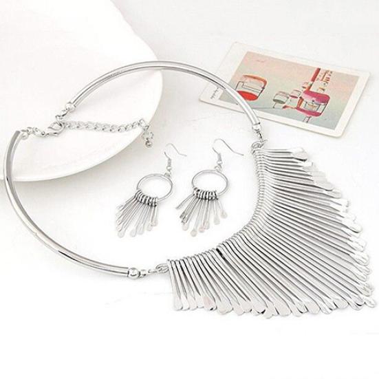 Женский модный комплект ювелирных изделий с кисточками, кулон-цепочка, колье, воротник, ожерелье, серьги