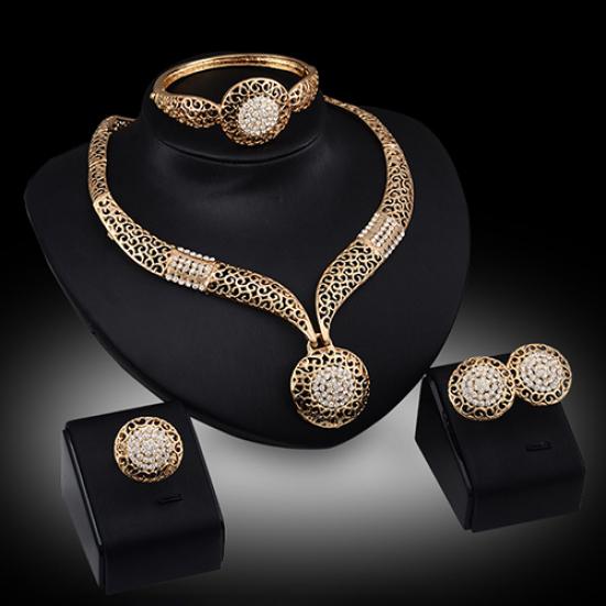 Женщины Банкет Свадебная вечеринка Полые горный хрусталь Ожерелье Браслет Кольцо Серьги Набор