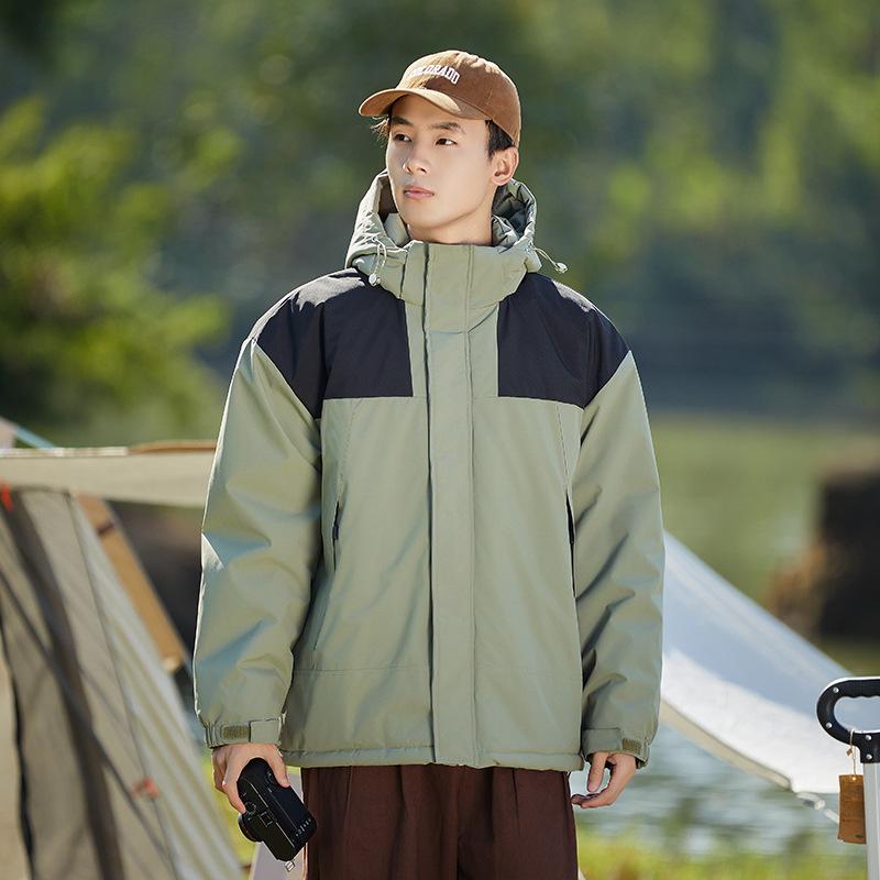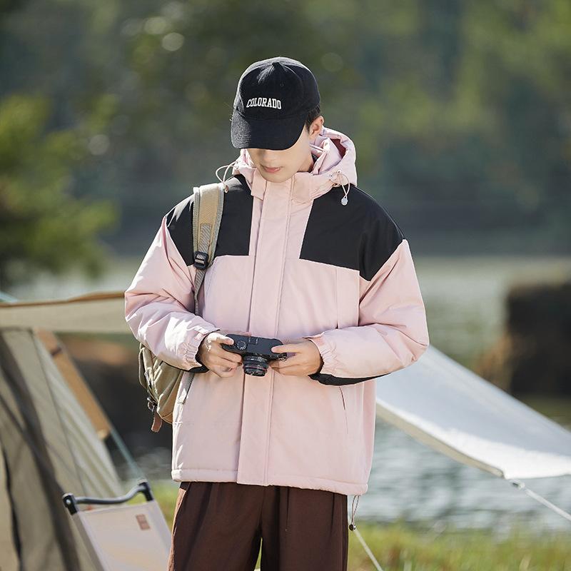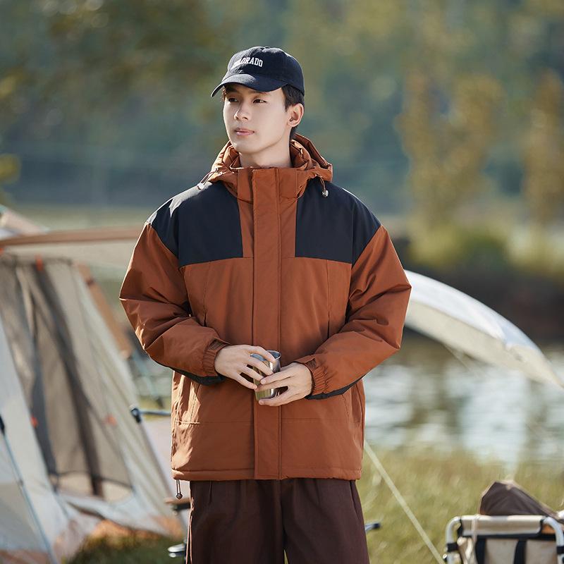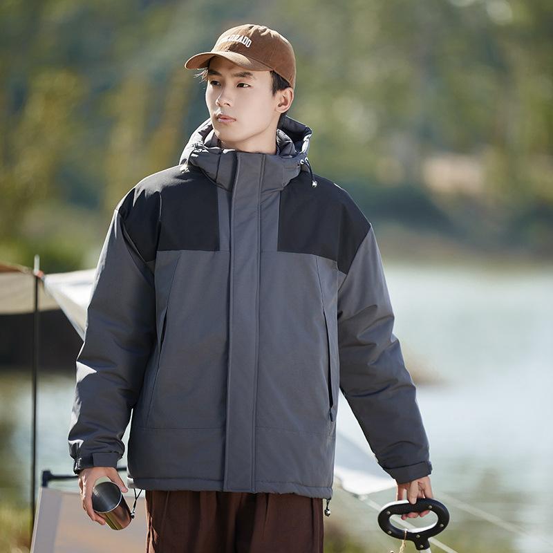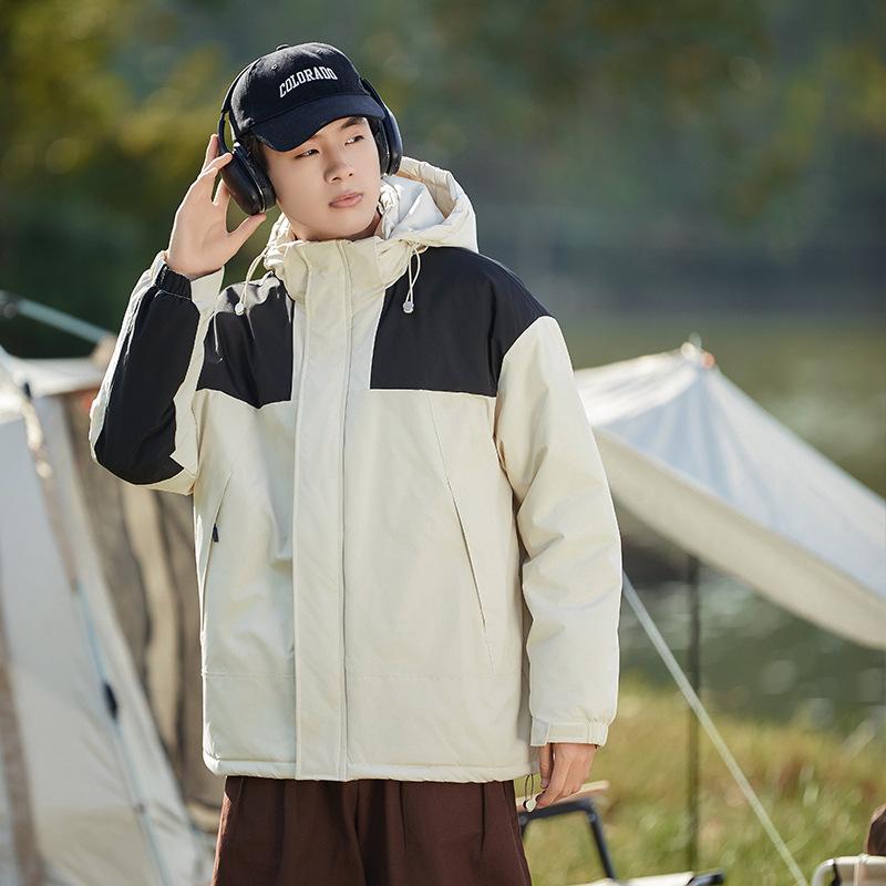 Мужская разноцветная куртка с капюшоном с добавлением хлопка Мужская толстая и теплая хлопковая куртка