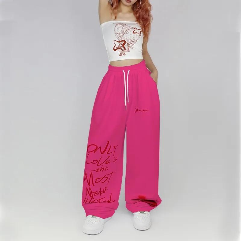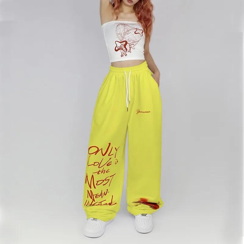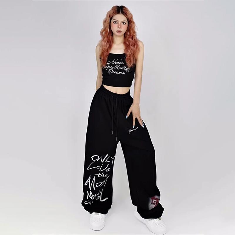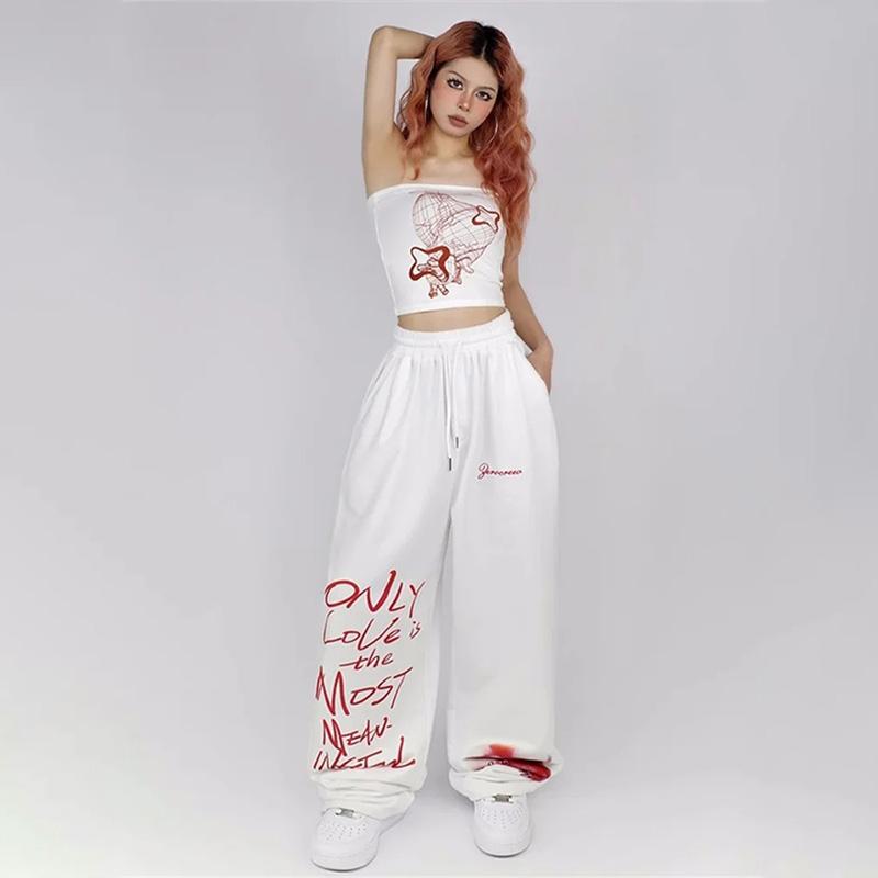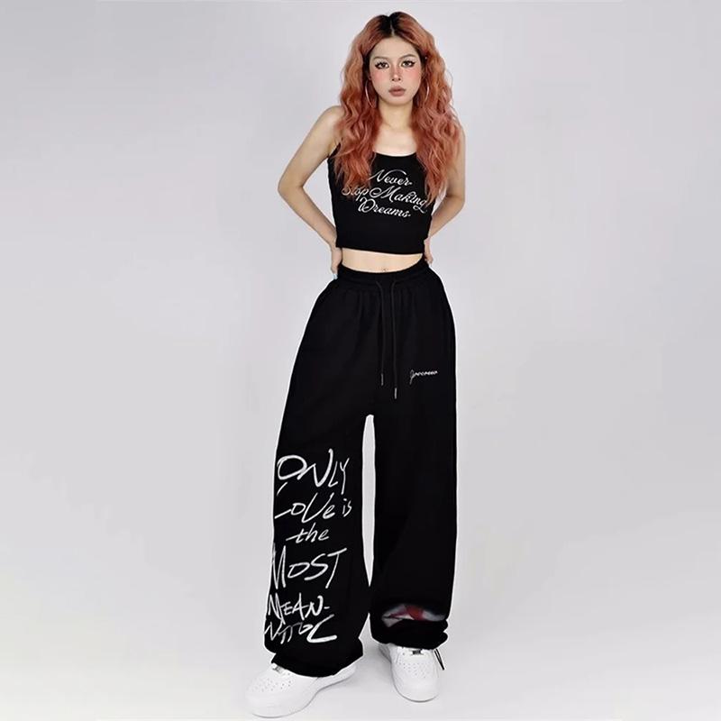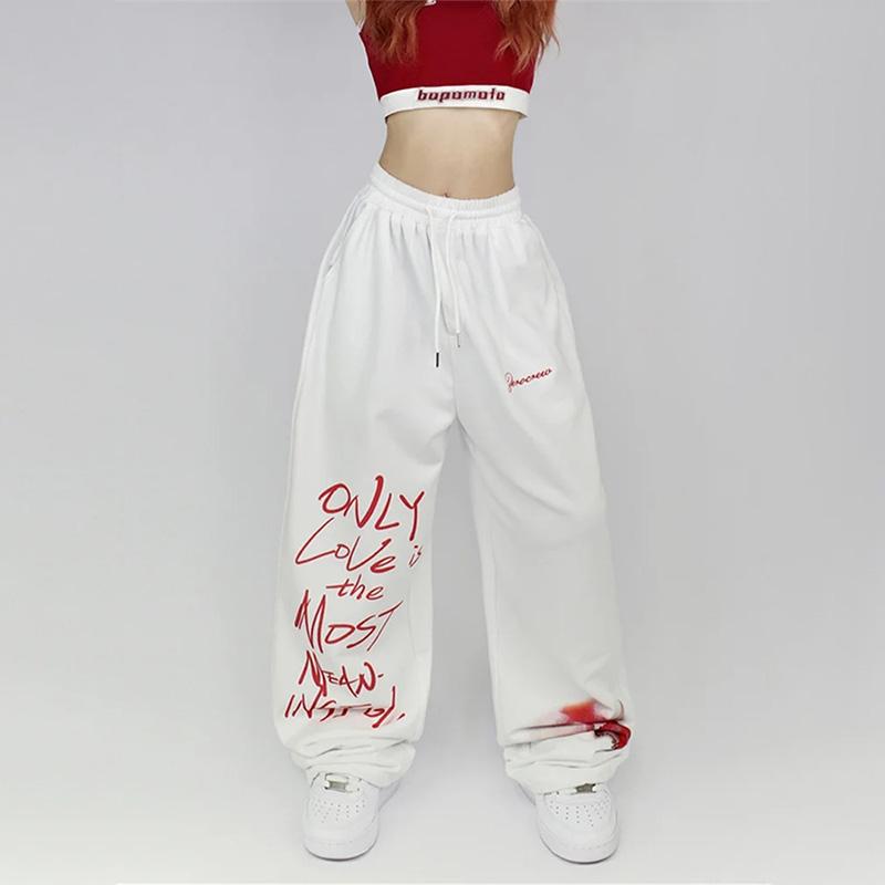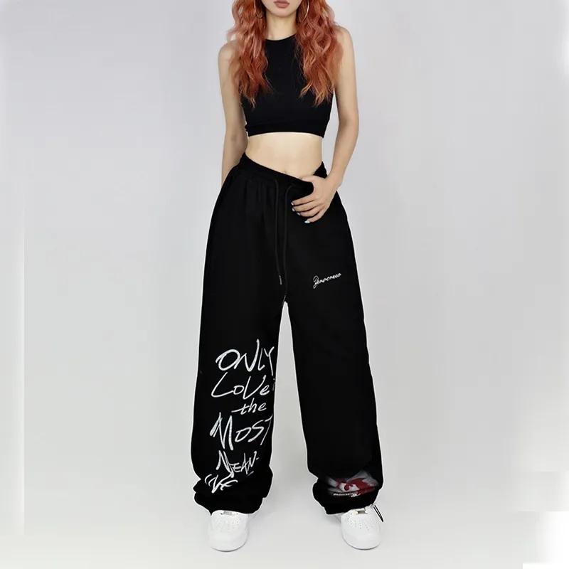 Y2K Уличная одежда, белые спортивные штаны, женские черные спортивные штаны в корейском стиле с буквенным принтом, большие спортивные штаны в стиле Харадзюку, Kpop, беговые брюки в стиле хип-хоп
