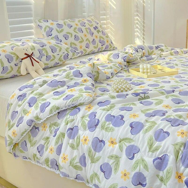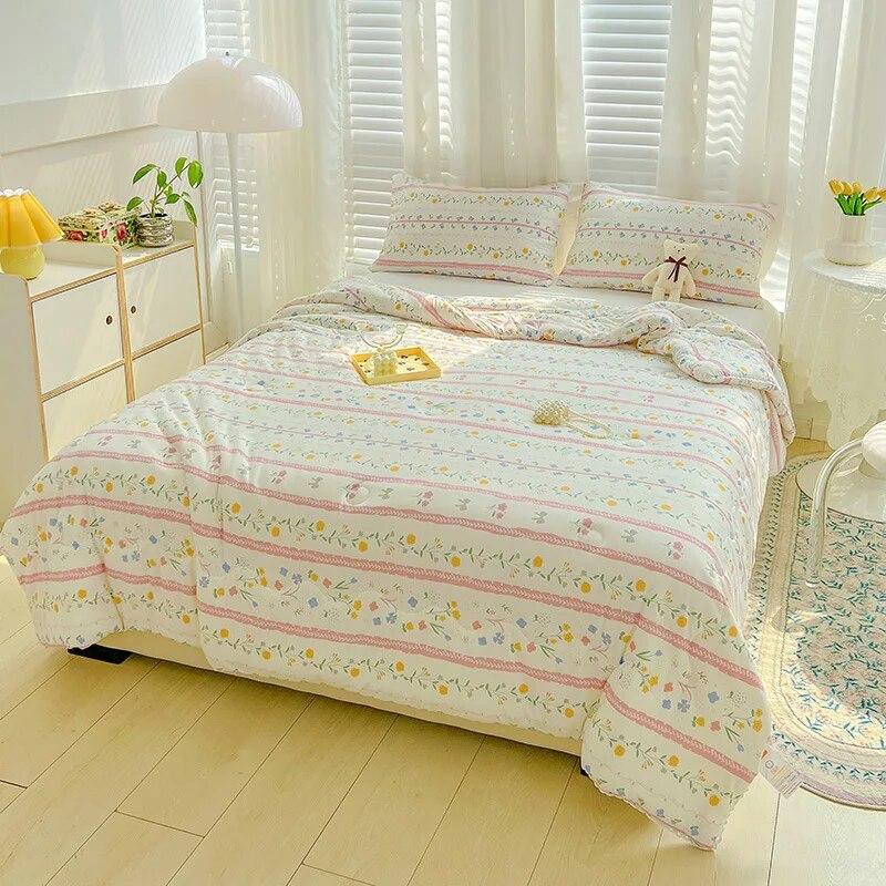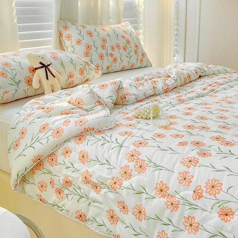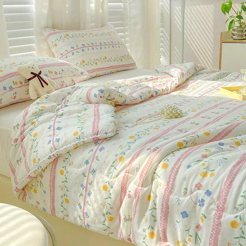 Одеяло трикотажное хлопковое одеяло для материнства и младенца с кондиционером для детей, летнее маленькое свежее тонкое одеяло в кружевном стиле, комплект из трех предметов