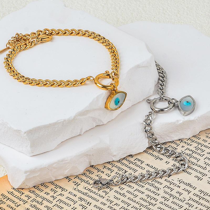 Титан, титановая сталь, белая ракушка, кулон с голубыми глазами, золотой браслет из нержавеющей стали
