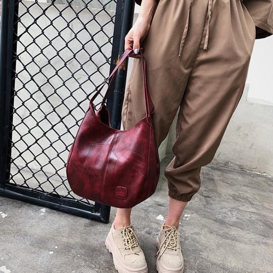 Винтажная однотонная женская сумка из искусственной кожи большой емкости через плечо