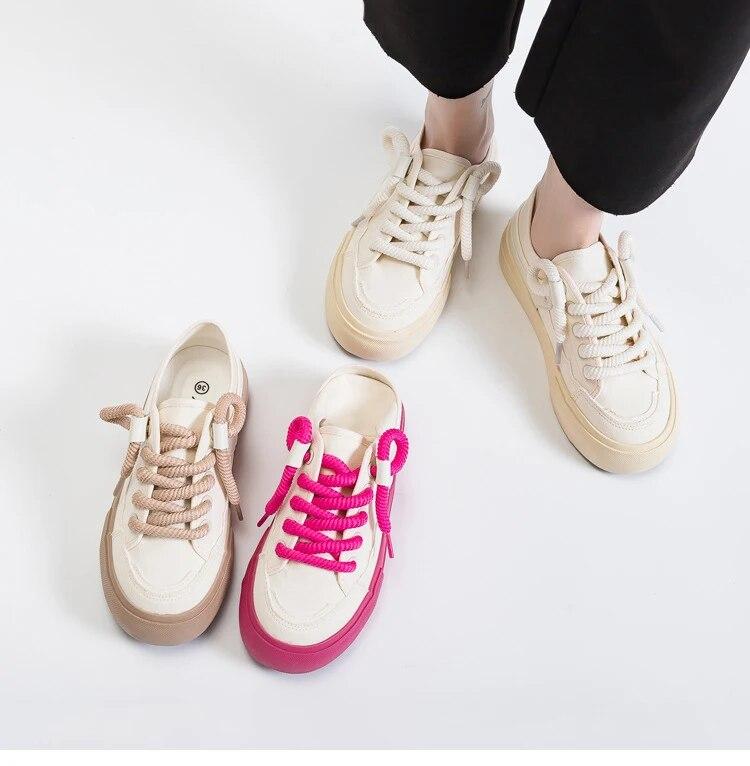 Женская обувь, новые тенденции, красочные парусиновые кроссовки на шнуровке для женщин, повседневные дышащие удобные белые туфли без шнуровки на плоской подошве