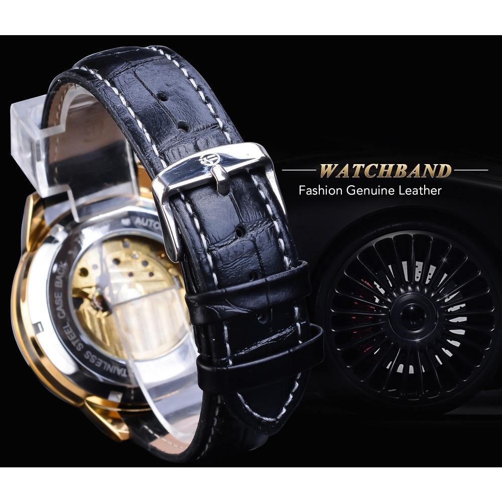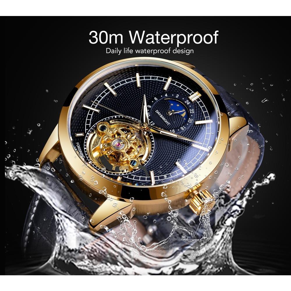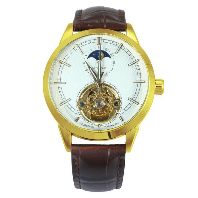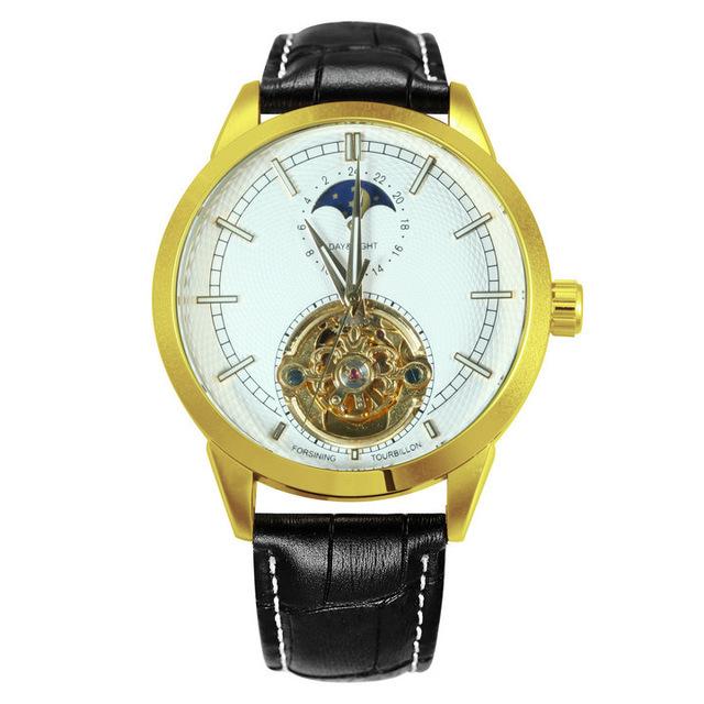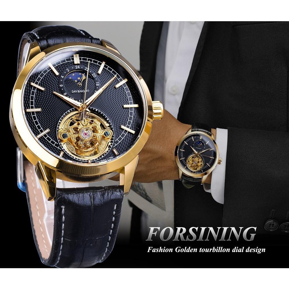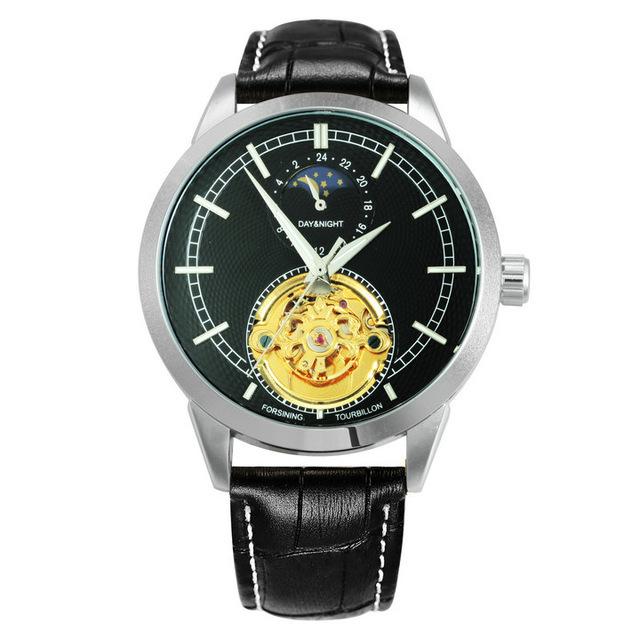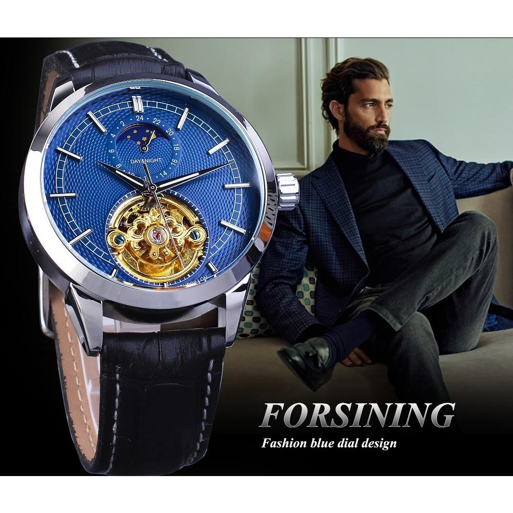Forsining Мужские модные повседневные автоматические механические часы с полой фазой Луны и резными полыми GMT1177-2-A