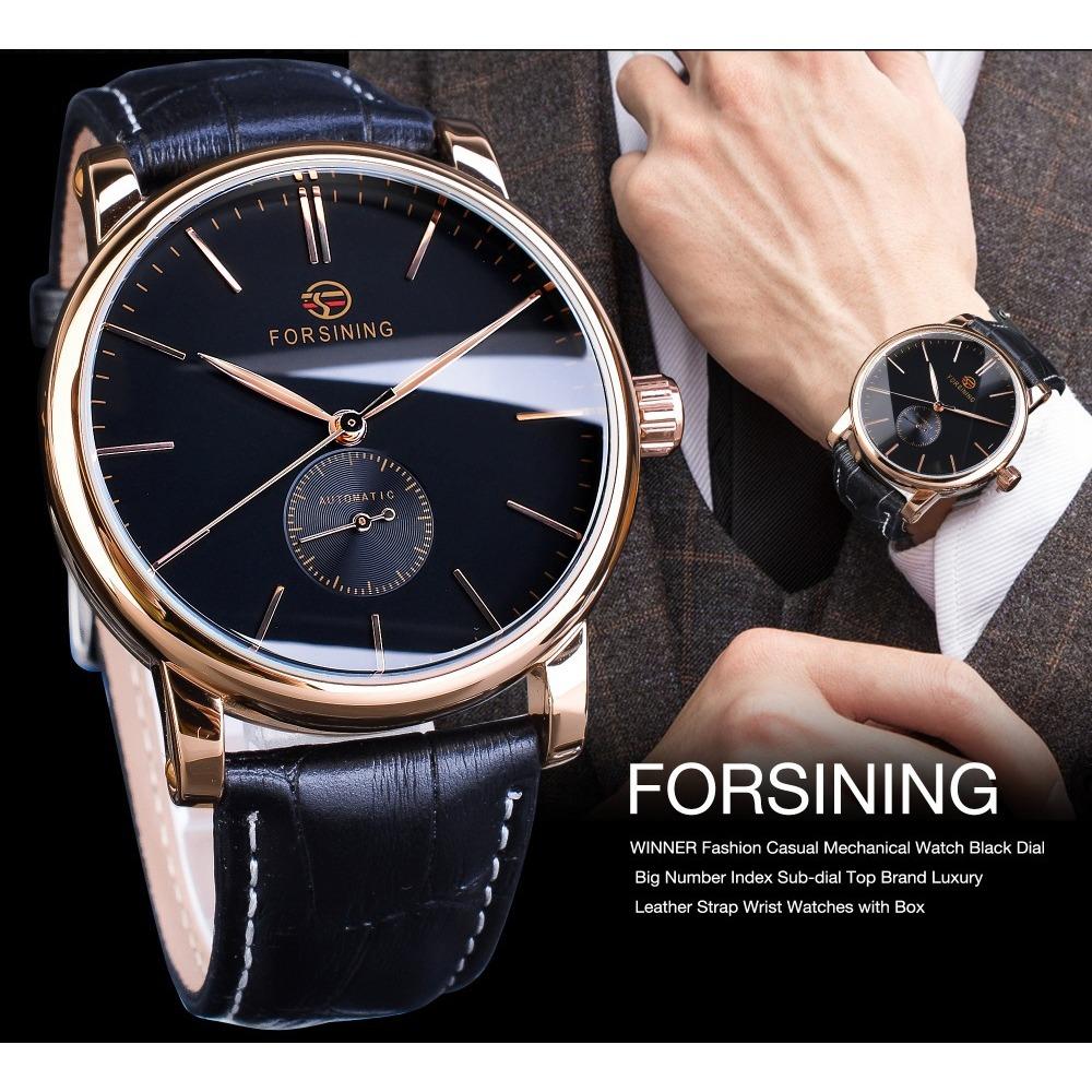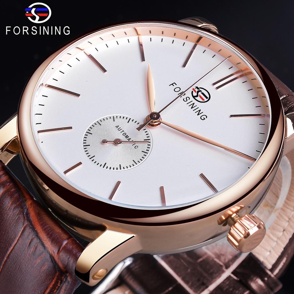 Forsining Мужские модные повседневные простые механические часы с автоматическим механическим механизмом GMT1164-6-A
