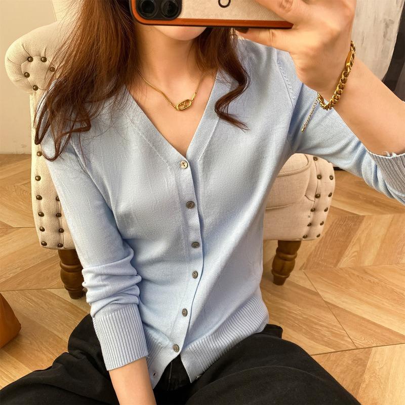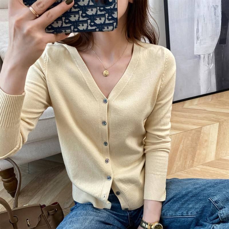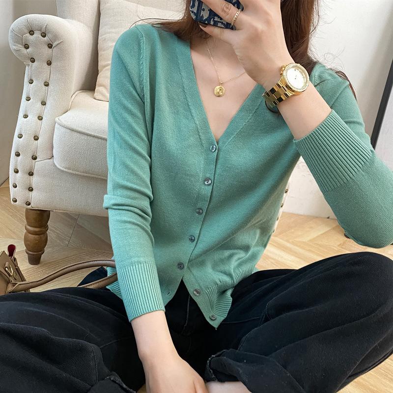 Весенне-осенний женский кардиган, куртка с v-образным вырезом, вязаный кардиган, короткий свободный свитер с баской, свитер с нитью