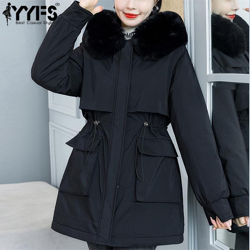 YYFS Женские модные повседневные осенне-зимние однотонные куртки и пальто с длинными рукавами с принтом, пуховые пальто