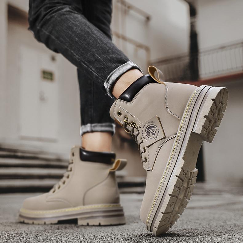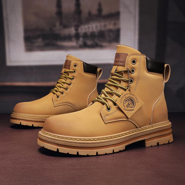Ботинки для рабочего костюма Кожаные ботинки Мужские популярные длинные сапоги Мужские ботинки большого размера Желтые ботинки в британском стиле в стиле ретро