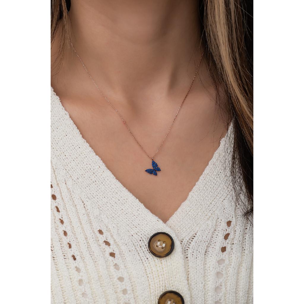 Женское серебряное ожерелье с крошечной синей бабочкой из стерлингового серебра 925 пробы