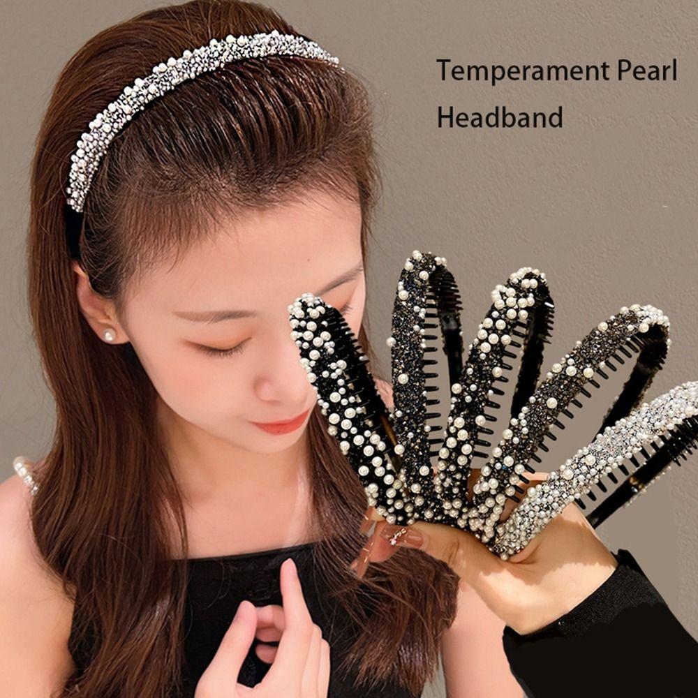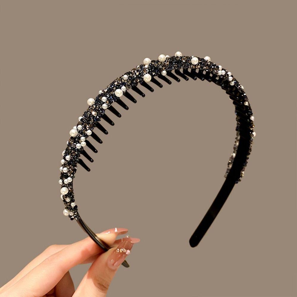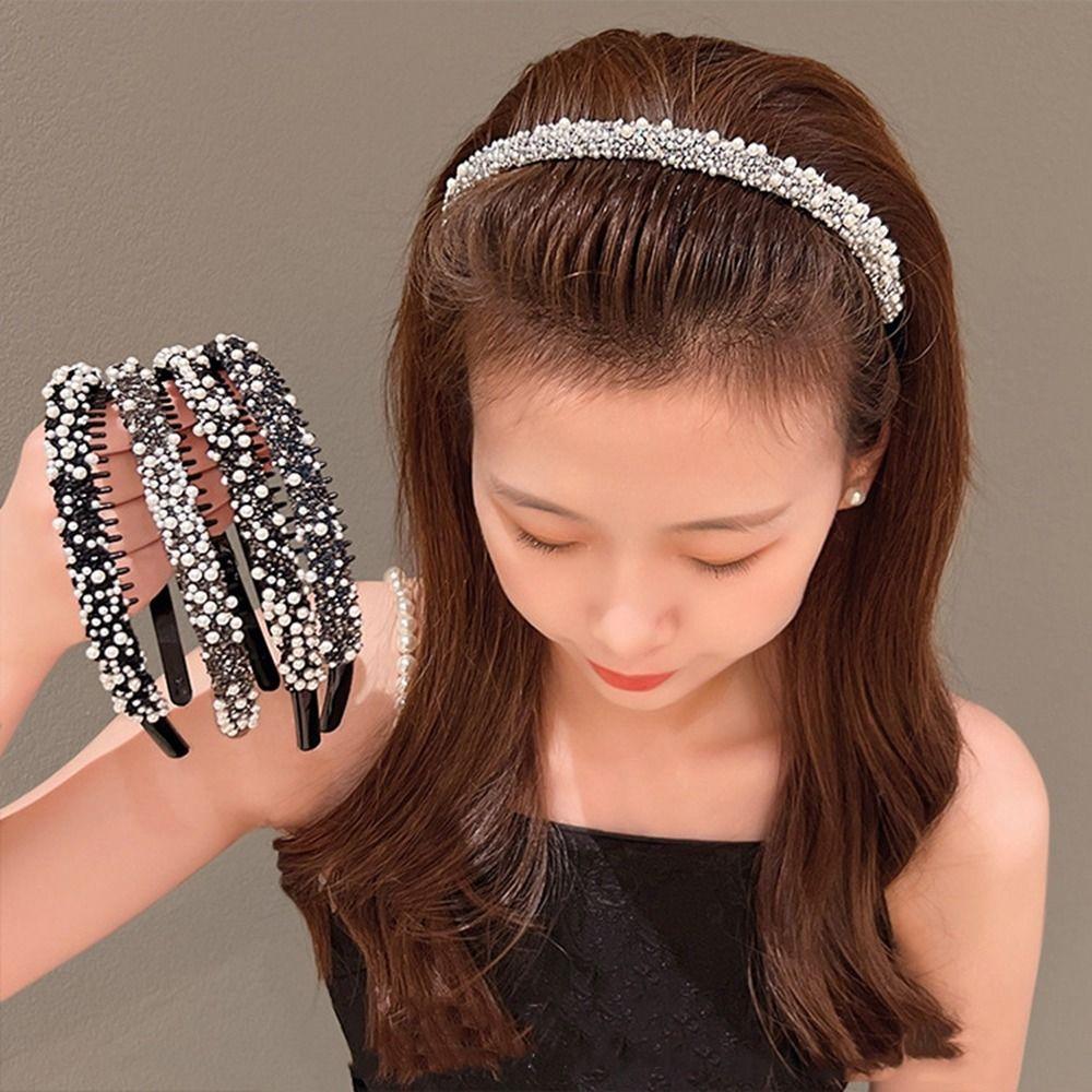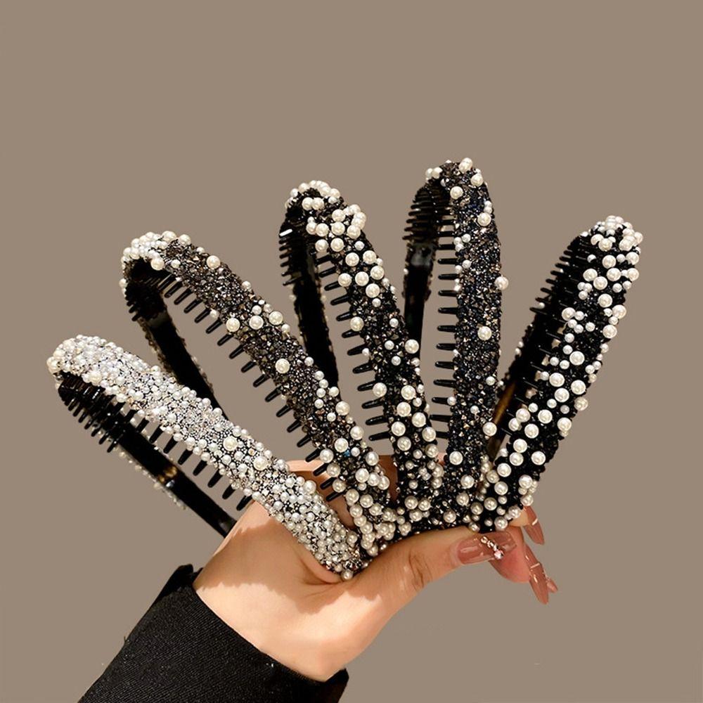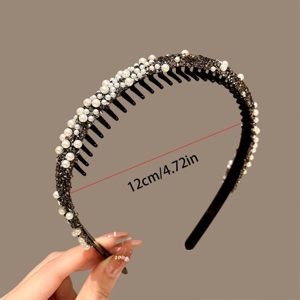 Повязка на голову с кристаллами и стразами, пластиковая повязка для волос с жемчугом, нескользящая ретро-повязка в стиле ретро