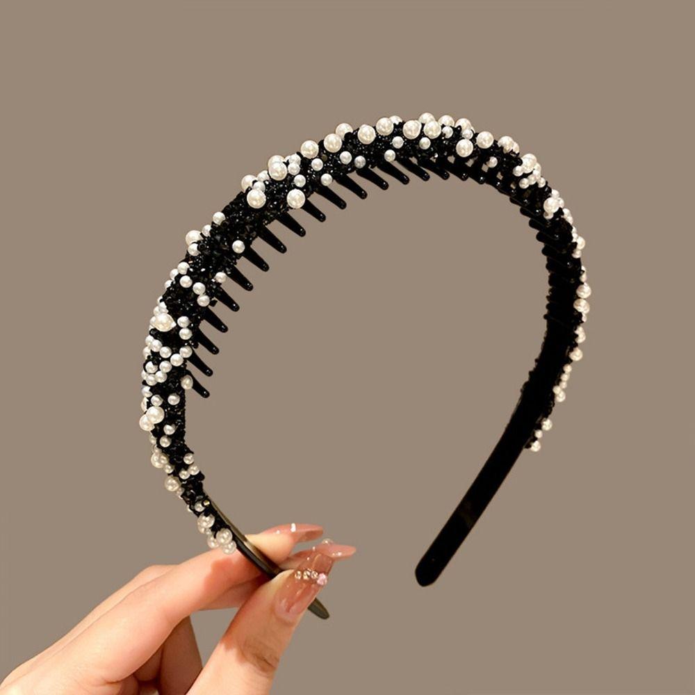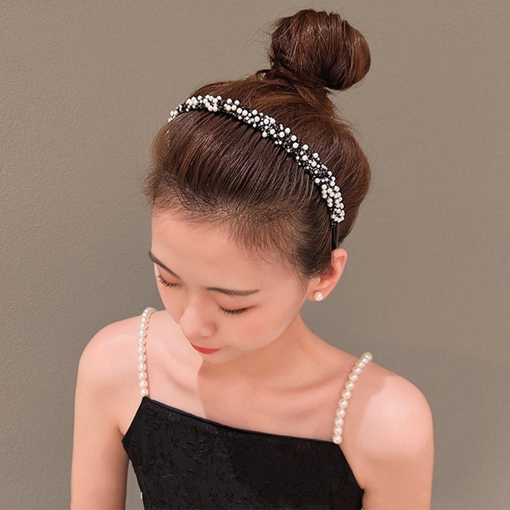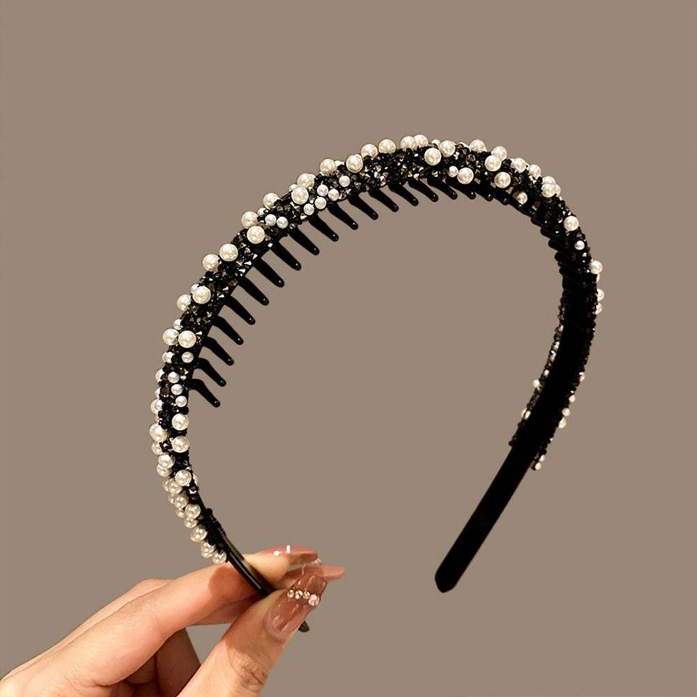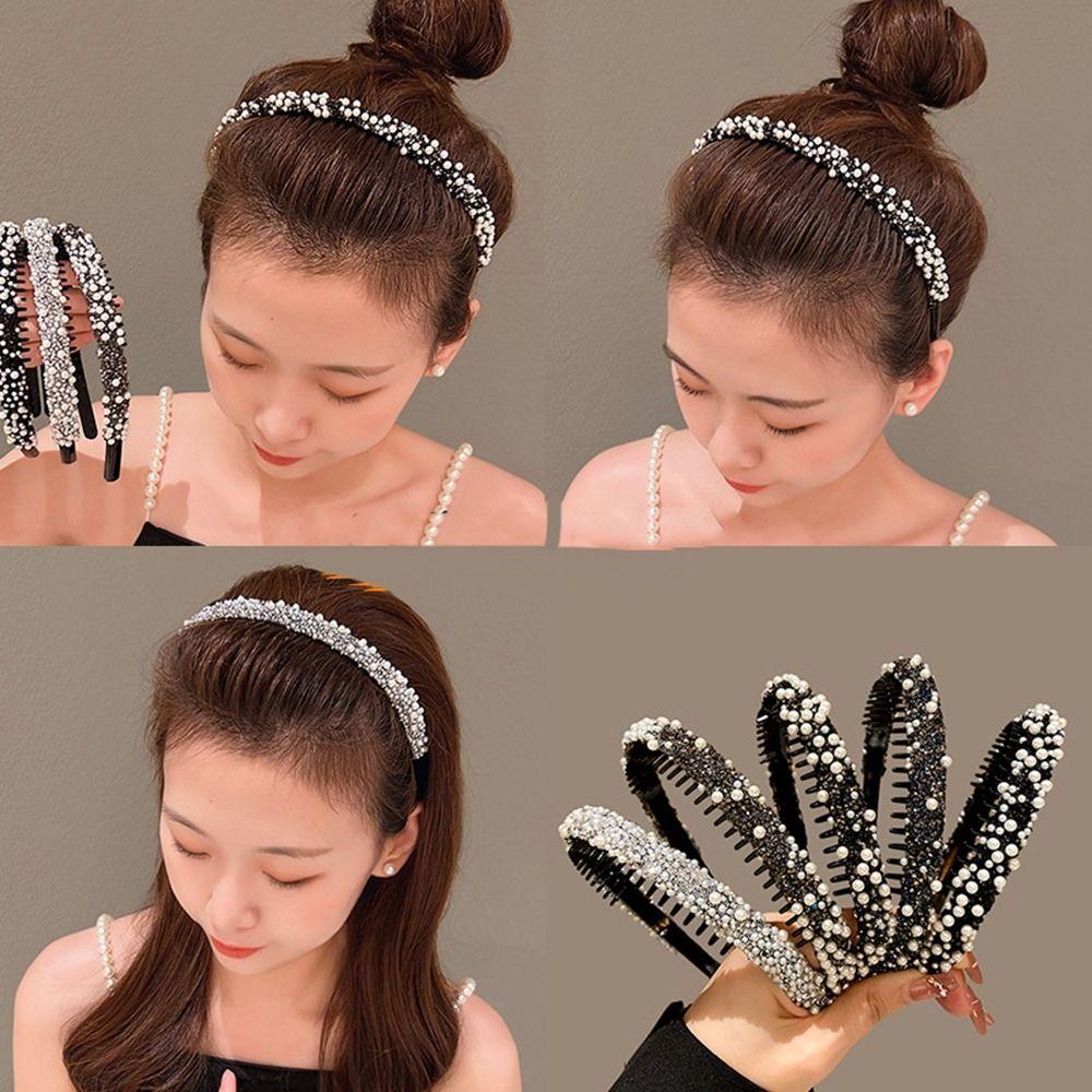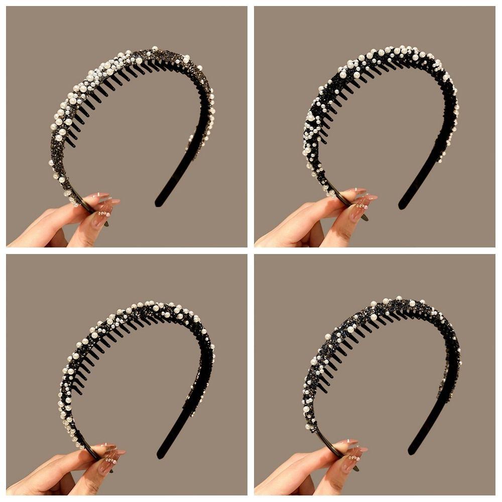 Повязка на голову с кристаллами и стразами, пластиковая повязка для волос с жемчугом, нескользящая ретро-повязка в стиле ретро