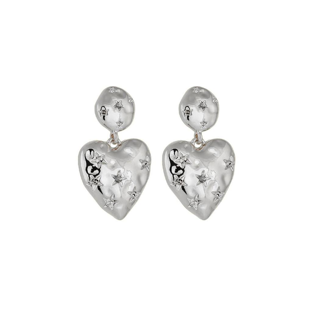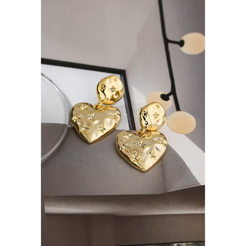 Золотые серьги-сердечки со звездным узором
