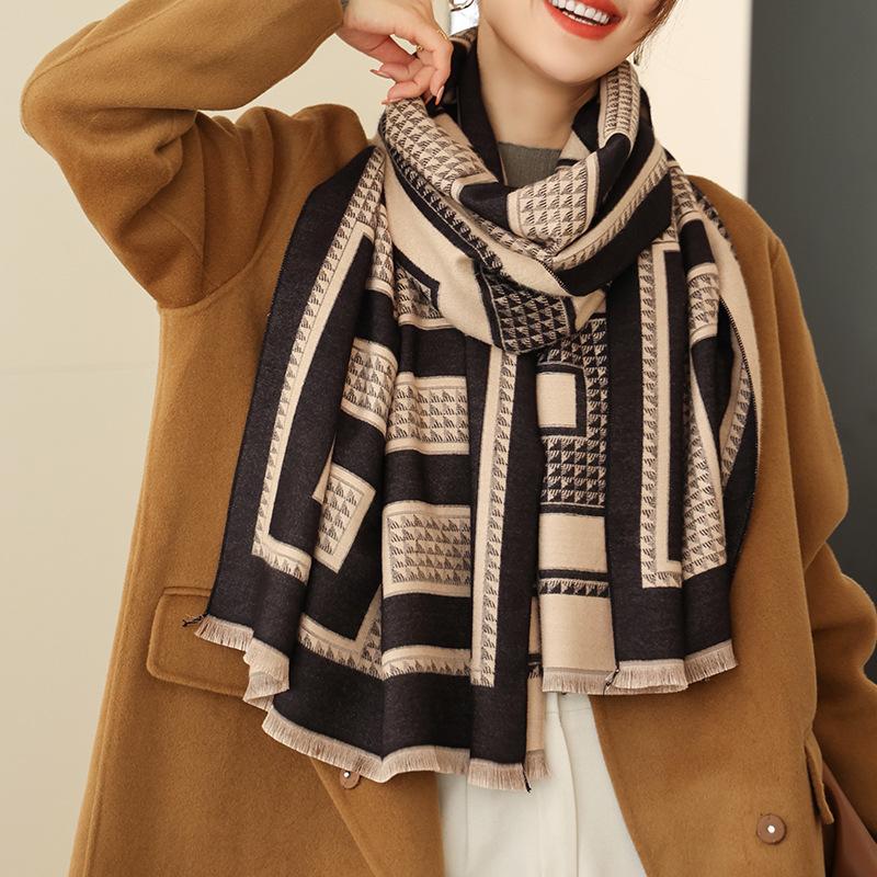 Осенне-зимний корейский модный декоративный теплый шарф, средняя и длинная шаль двойного назначения с женским нагрудником