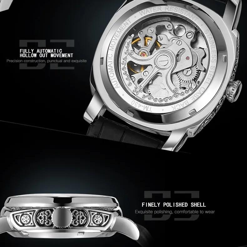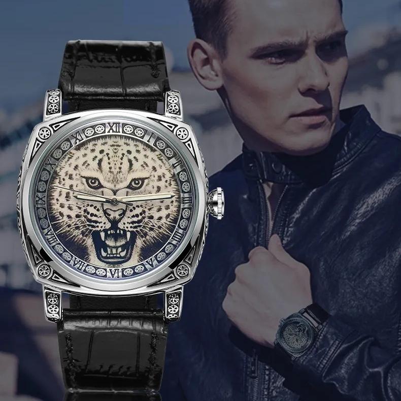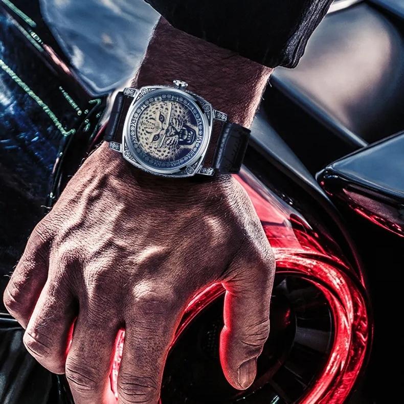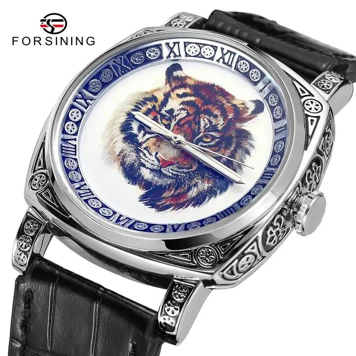 Forsining Мужские модные повседневные автоматические механические часы с драконом, тигром, леопардом и пиратским узором NP1