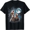 Забавная 3 енота и луны, воющая голова енота, забавная для унисекс, женская детская футболка, повседневные хлопковые повседневные футболки на четыре сезона