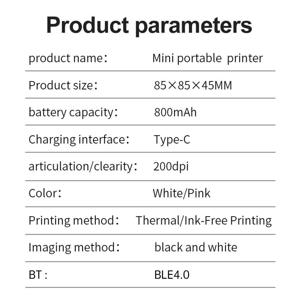 Компактный и очаровательный дизайн: Благодаря небольшой и легкой конструкции этот принтер легко помещается в кармане или сумке, что делает его очень портативным.. Разрешение 200 точек на дюйм обеспечивает четкую и качественную печать.. Это идеальный инструмент для различных условий, включая учебу, работу, домашнее использование и путешествия.. Это также идеальный подарок для студентов, офисных работников, близких, друзей и членов семьи.