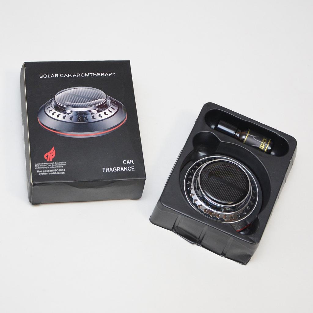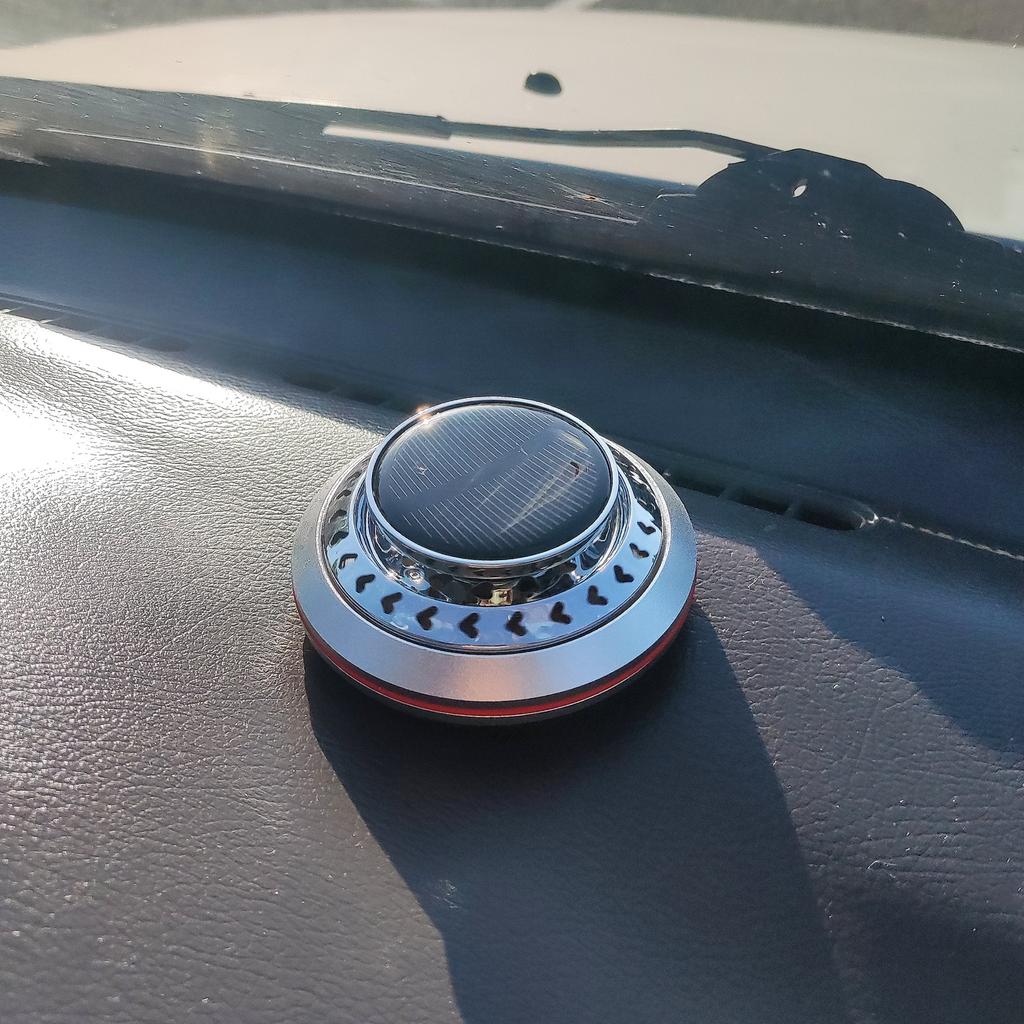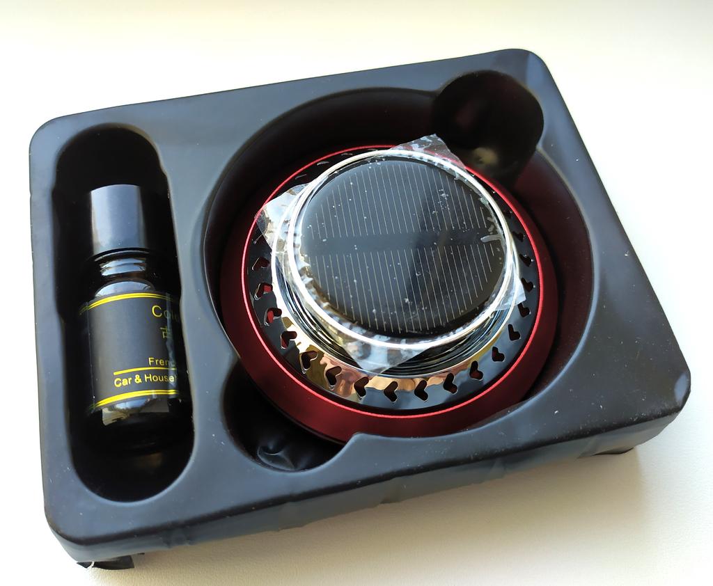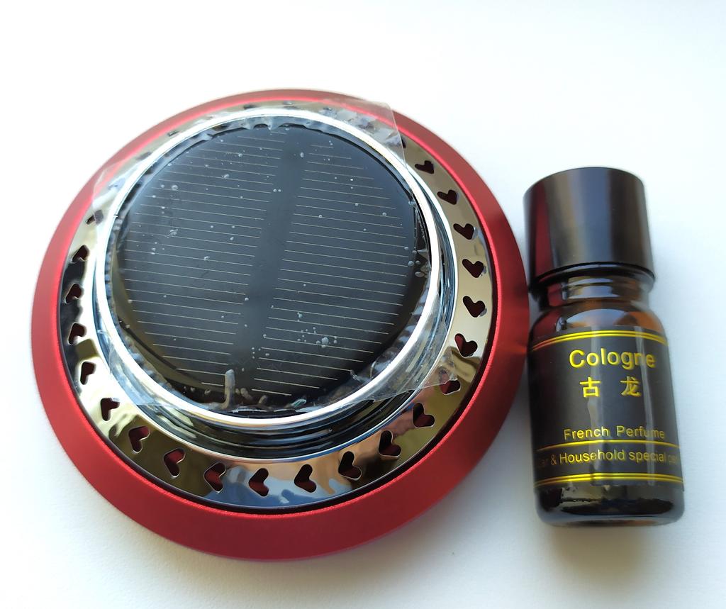 Необычный автомобильный освежитель воздуха на солнечной батарее. Можно выбрать 3 цвета на выбор. Комплектация: сам контейнер, двусторонний скотч, арома диск и ароматизатор. Очень компактные размеры, подойдёт для любого автомобиля. Служит не только для создания приятного аромата, но и имеет прикольную фишку, которая приятна на глаз и выполняет функцию рассеивателя аромата, об этом ниже. Устройство выполнено в металлическом корпусе и состоит из алюминиевого основания с пластиковой втулкой и съёмной верхней части, которая в свою очередь состоит из решётчатой крыльчатки с встроенным электродвигателем и солнечной панели. Диффузор с двигателем закреплены неподвижно, а вращается сам вал, вставленный во втулку основания. Принцип действия устройства прост. Кремниевая панель улавливает солнечные лучи и преобразует их фотоны в электрический ток, который приводит в действие вал микромоторчика. Вал вращаясь заставляет крутиться диффузор-крыльчатку, которая вращаясь подымает вверх пары ароматического масла, тем самым, как бы рассеивая их в пространстве. Чем больше света, тем быстрее скорость. Для крепления на торпеду автомобиля или к другим поверхностям используется двухсторонняя клейкая основа, а для смены ароматизатора достаточно открыть крышку и добавить несколько капель масла и вернуть крышку назад. Продавец отправил быстро.