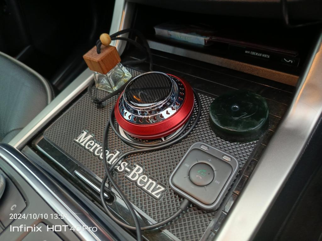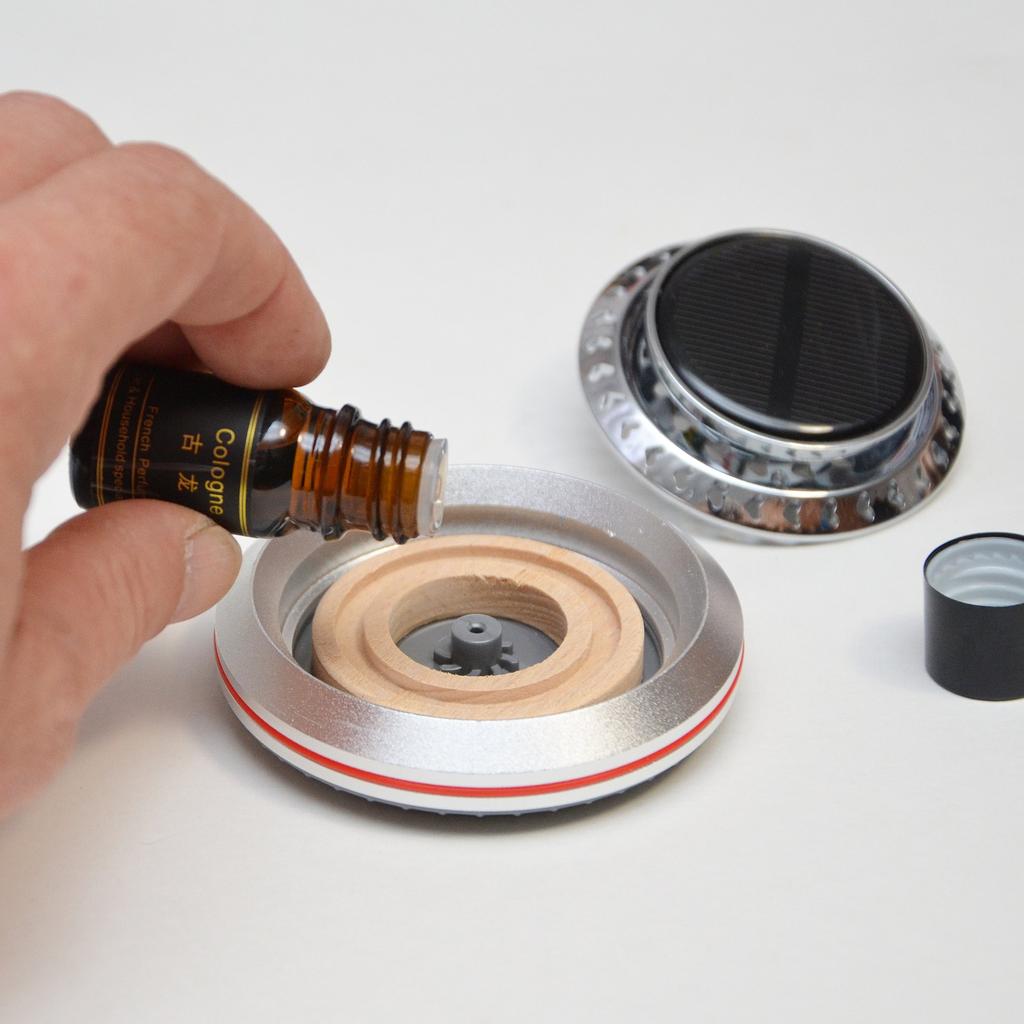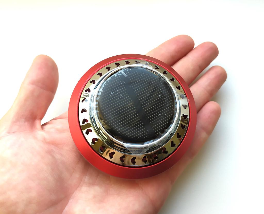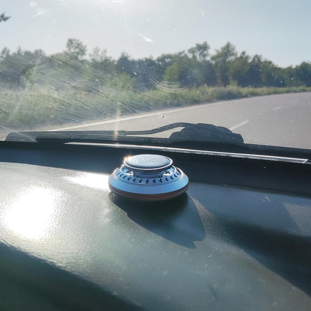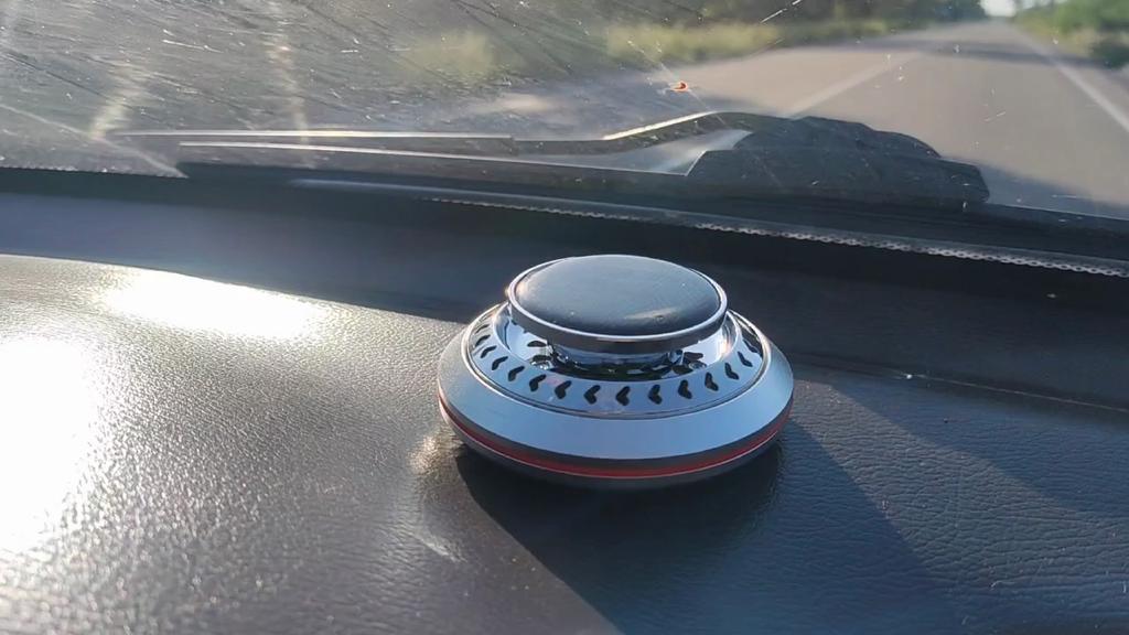 Необычный автомобильный освежитель воздуха на солнечной батарее. Можно выбрать 3 цвета на выбор. Комплектация: сам контейнер, двусторонний скотч, арома диск и ароматизатор. Очень компактные размеры, подойдёт для любого автомобиля. Служит не только для создания приятного аромата, но и имеет прикольную фишку, которая приятна на глаз и выполняет функцию рассеивателя аромата, об этом ниже. Устройство выполнено в металлическом корпусе и состоит из алюминиевого основания с пластиковой втулкой и съёмной верхней части, которая в свою очередь состоит из решётчатой крыльчатки с встроенным электродвигателем и солнечной панели. Диффузор с двигателем закреплены неподвижно, а вращается сам вал, вставленный во втулку основания. Принцип действия устройства прост. Кремниевая панель улавливает солнечные лучи и преобразует их фотоны в электрический ток, который приводит в действие вал микромоторчика. Вал вращаясь заставляет крутиться диффузор-крыльчатку, которая вращаясь подымает вверх пары ароматического масла, тем самым, как бы рассеивая их в пространстве. Чем больше света, тем быстрее скорость. Для крепления на торпеду автомобиля или к другим поверхностям используется двухсторонняя клейкая основа, а для смены ароматизатора достаточно открыть крышку и добавить несколько капель масла и вернуть крышку назад. Продавец отправил быстро.