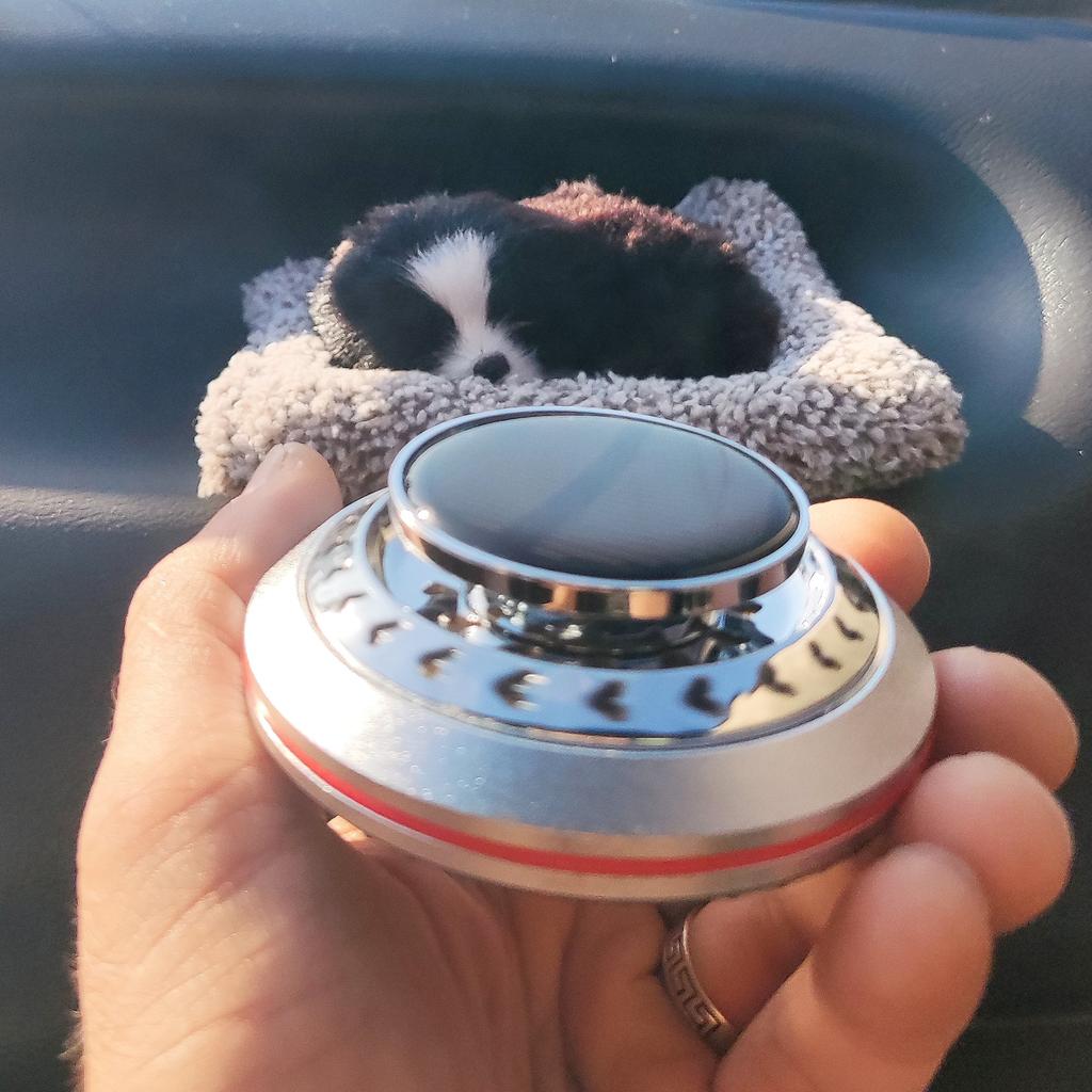 Автомобильный освежитель воздуха с эффектом вращения на солнечной батарее. 🤩🤩🤩👍 Служит не только для создания приятного аромата, но и имеет антистрессовый эффект за счет вращения диска, благодаря солнечной батарее. Движение осуществляется благодаря встроенной солнечной панели - чем больше света, тем быстрее скорость. Для крепления на торпеду автомобиля или к другим поверхностям используется двухсторонняя клейкая основа, а для увеличения аромата, достаточно потянуть за верхний диск, капнуть с бутылочки на таблетку ароматизатор и вернуть диск назад. Комплект: - фирменная коробка; - ароматизатор на солнечной батарее; - таблетка; - бутылочка с ароматной жидкостью. Доставили в отделение почты в идеальном состоянии. Рекомендую присмотреться, вещица очень интересная, плюс с ароматом. Приятных покупок! 👍😊