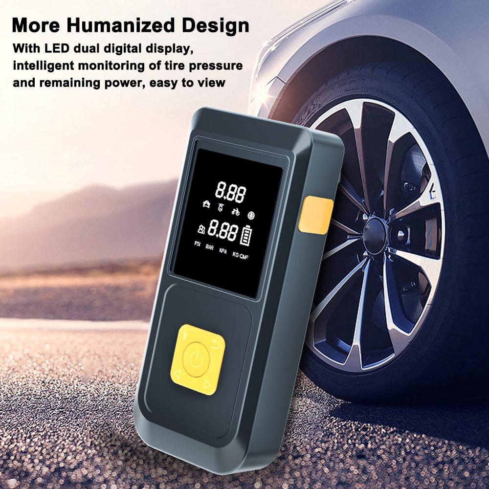Более гуманизированный дизайн Со светодиодным двойным цифровым дисплеем, интеллектуальным мониторингом давления в шинах и оставшейся мощности, легко просматривать. Компактный размер и легкий вес, с сумкой-органайзером, легко хранить и носить с собой.