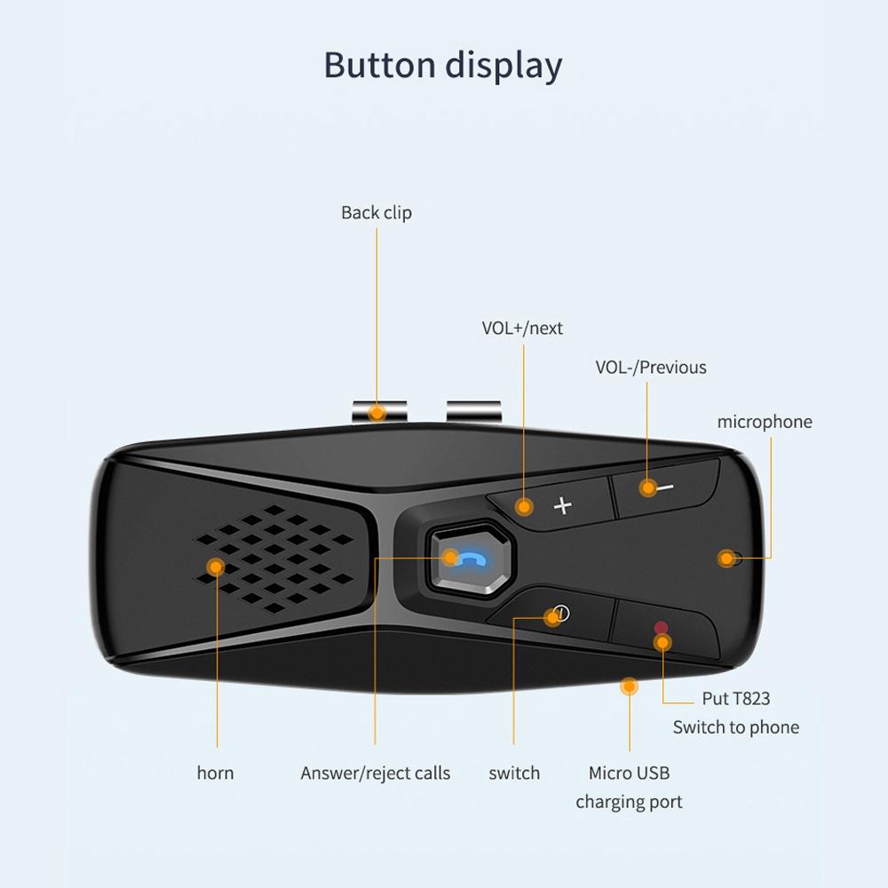 Автомобильный спикерфон BT: Поддерживает ответ на вызовы одной кнопкой и активацию голосовых помощников смартфона для простого и удобного управления.