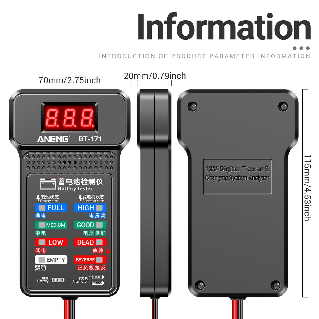 ANENG BT-171 12V Многофункциональные тестеры аккумуляторов Индикатор состояния Авторемонтная промышленность Обнаружение