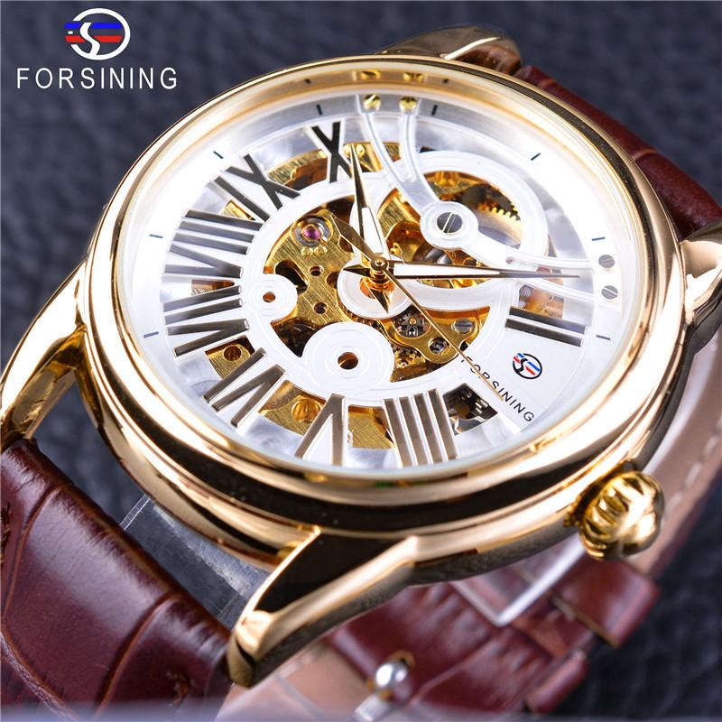 Forsining Мужские модные повседневные полые механические часы с автоматическим механическим механизмом GMT1069-2-W — купить товар онлайн с бесплатной доставкой по всему миру!