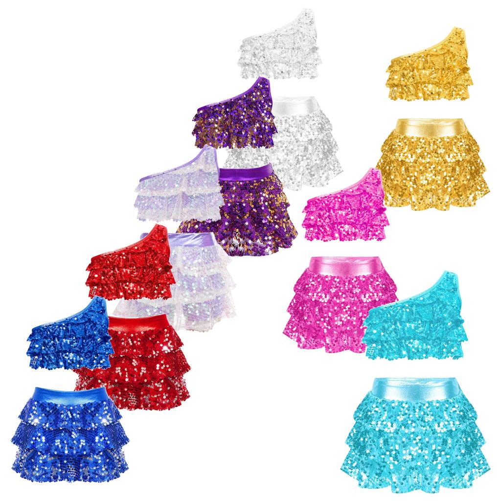 Укороченный топ с блестящими пайетками для девочек и юбка-солнце, танцевальный костюм для латиноамериканского джаза, сальсы, самбы, румбы