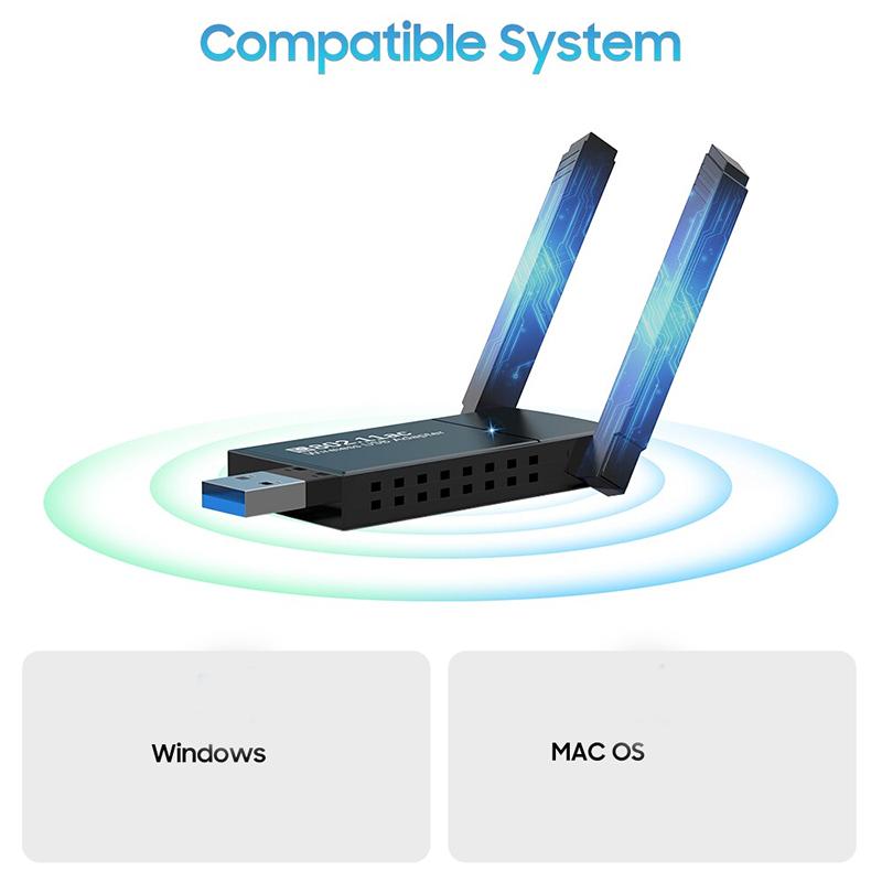 AC1300 Mbps High WiFI SPEED 5G / 2.4G - USB-адаптер Wi-Fi для ПК, 802.11AC Wifi USB, двухдиапазонный ключ WiFi, до 867 Мбит/с в диапазоне 5 ГГц или 400 Мбит/с в диапазоне 2,4 ГГц.