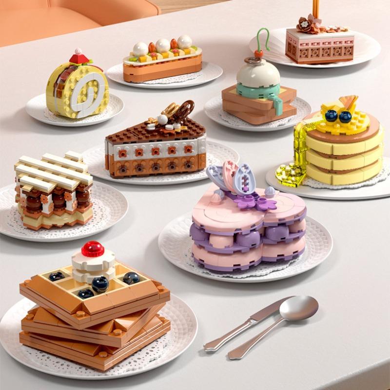 Еда журнал послеобеденный чай торт орнамент детская головоломка сборка строительные блоки игрушки