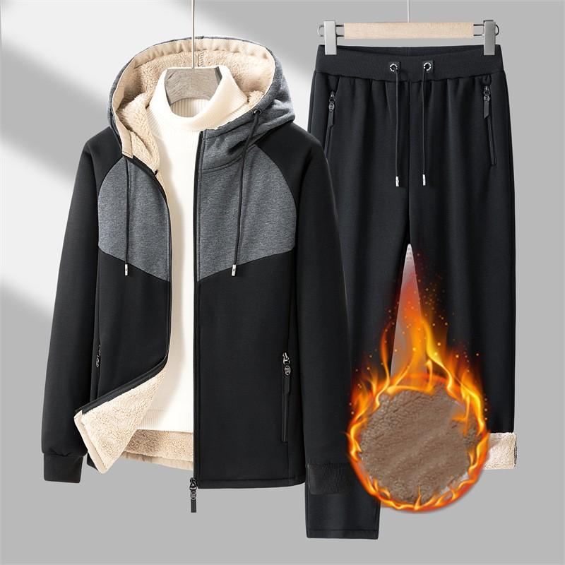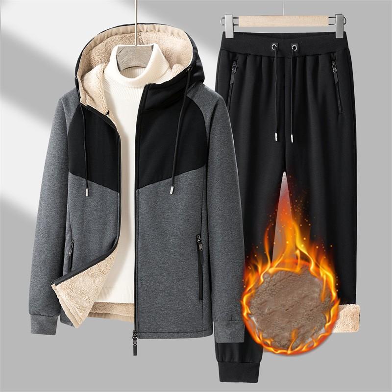 Мужской осенне-зимний утепленный кашемировый теплый кашемировый спортивный кардиган из двух частей с капюшоном, толстовка, брюки, новый костюм